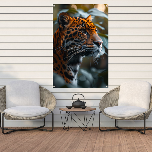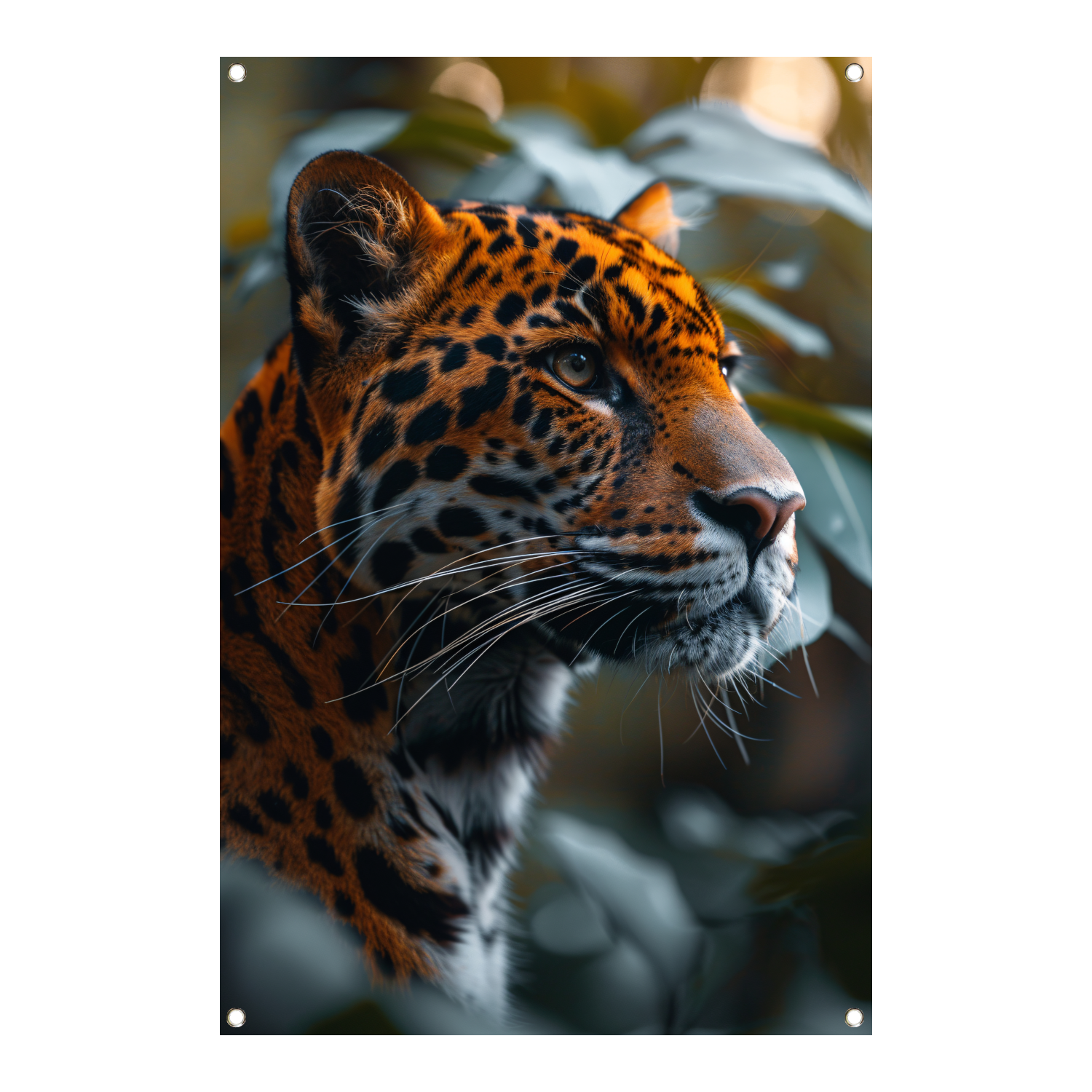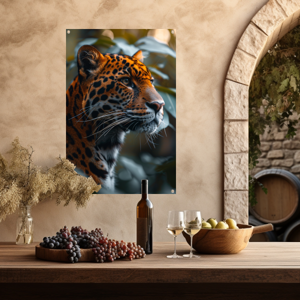 Majestueuze luipaard in natuurlijke habitat gevangen tuinposter