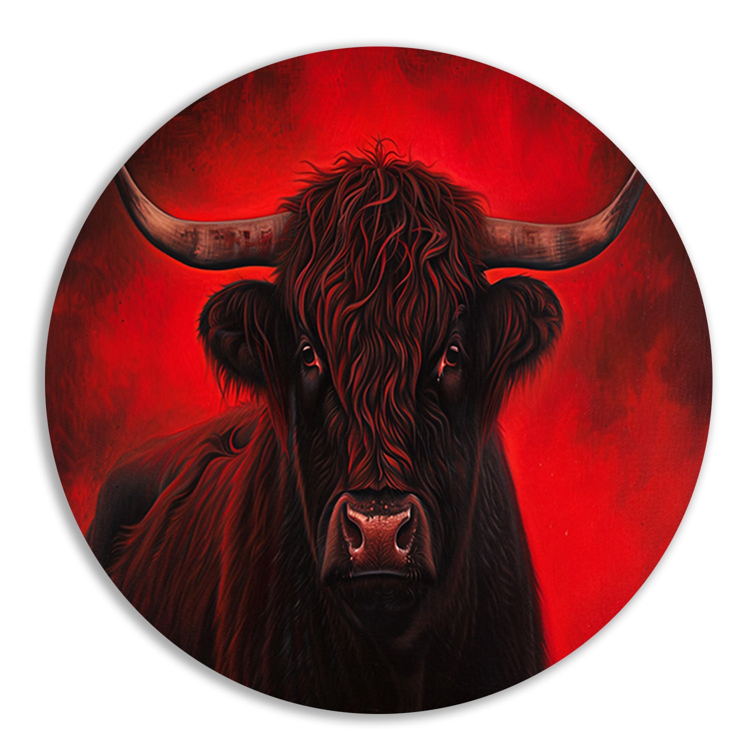 Majestueuze Schotse hooglander met vurige achtergrond aluminium muurcirkel