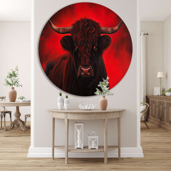 Haal de rustieke sfeer van de Schotse hooglanden in huis met deze prachtige muurcirkel en geniet dagelijks van het adembenemende uitzicht op de majestueuze hooglander. Waan je even in de natuur en creëer een warme en gezellige sfeer in jouw huis met dit unieke kunstwerk.