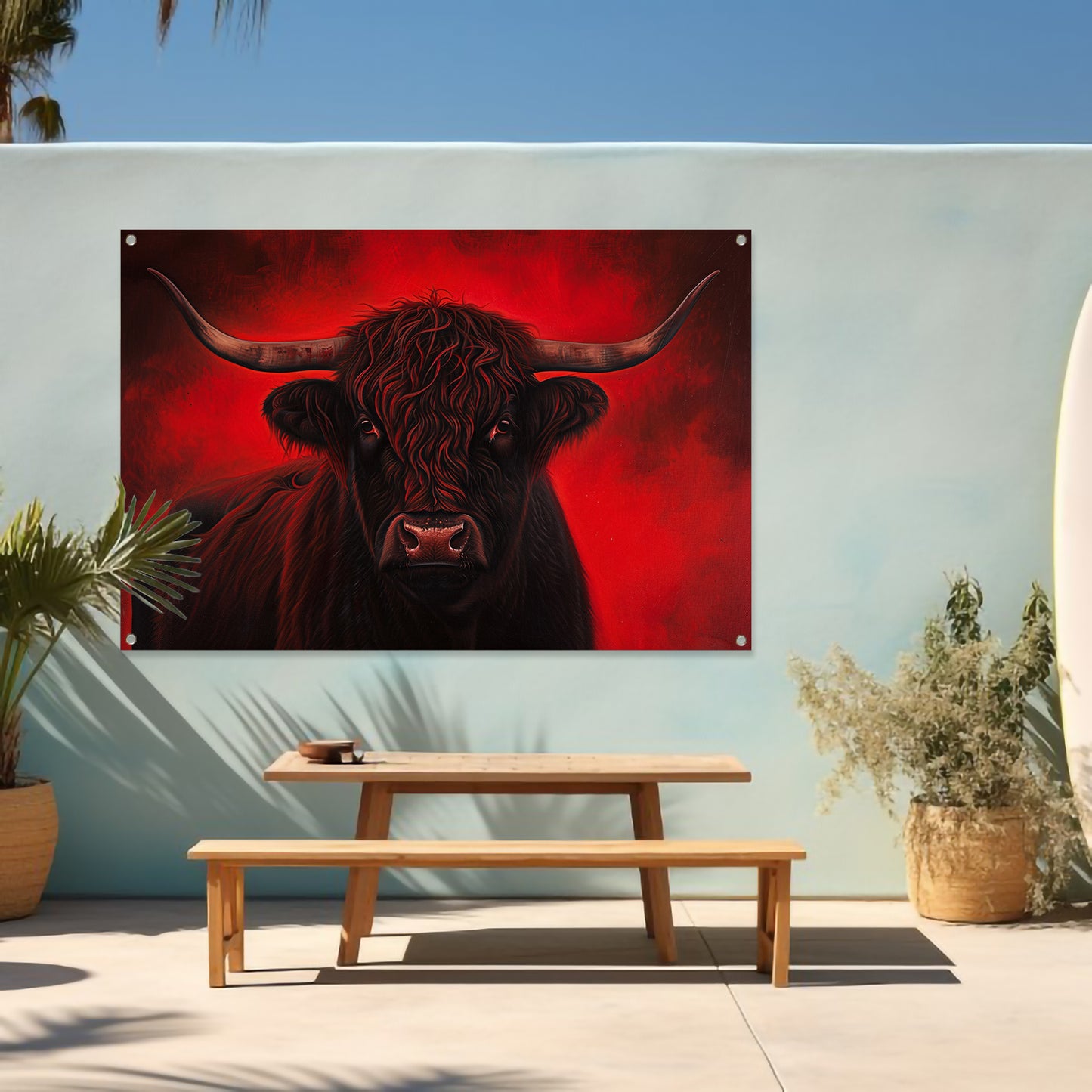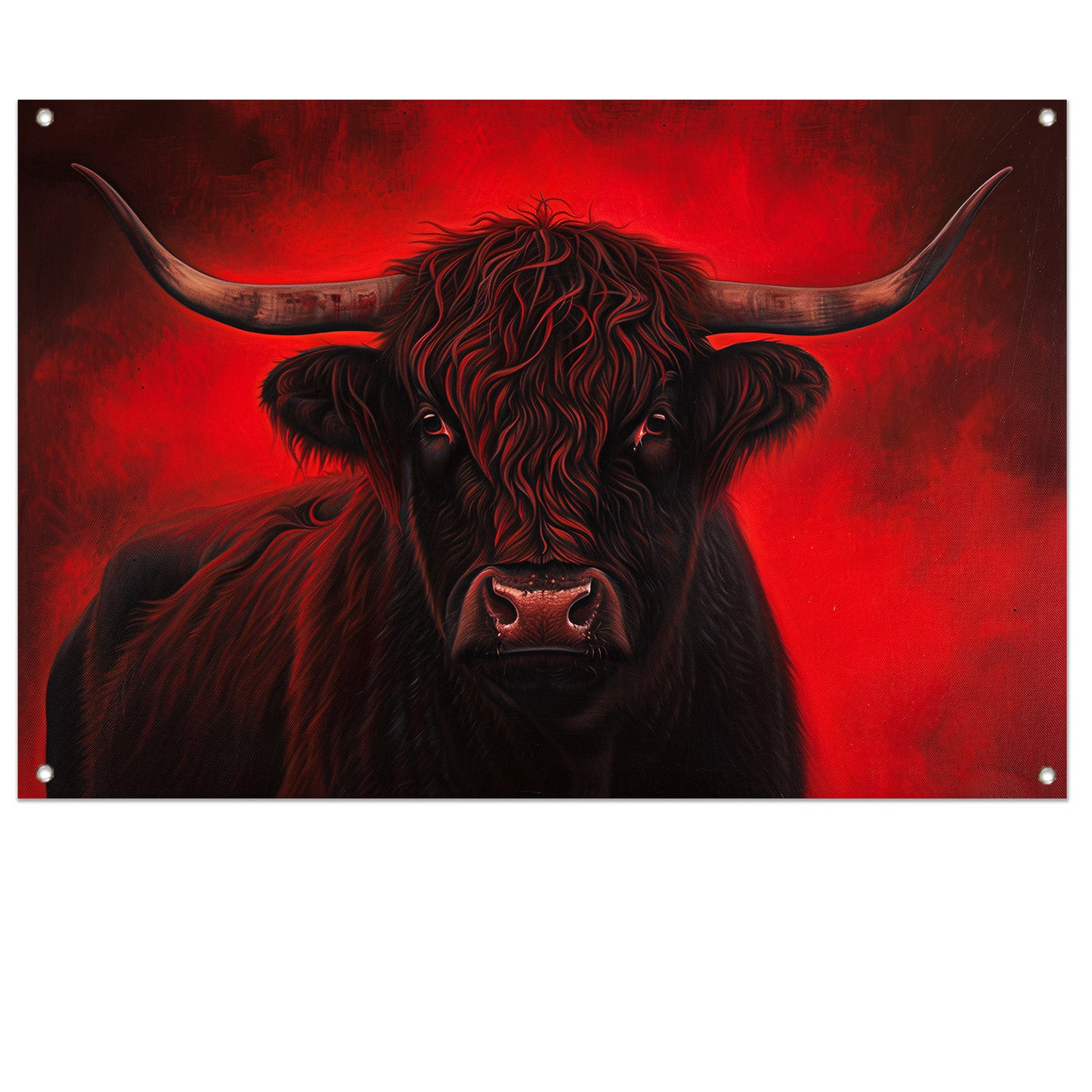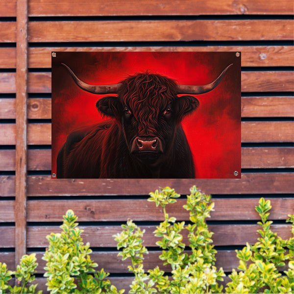 Majestueuze Schotse hooglander met vurige achtergrond tuinposter