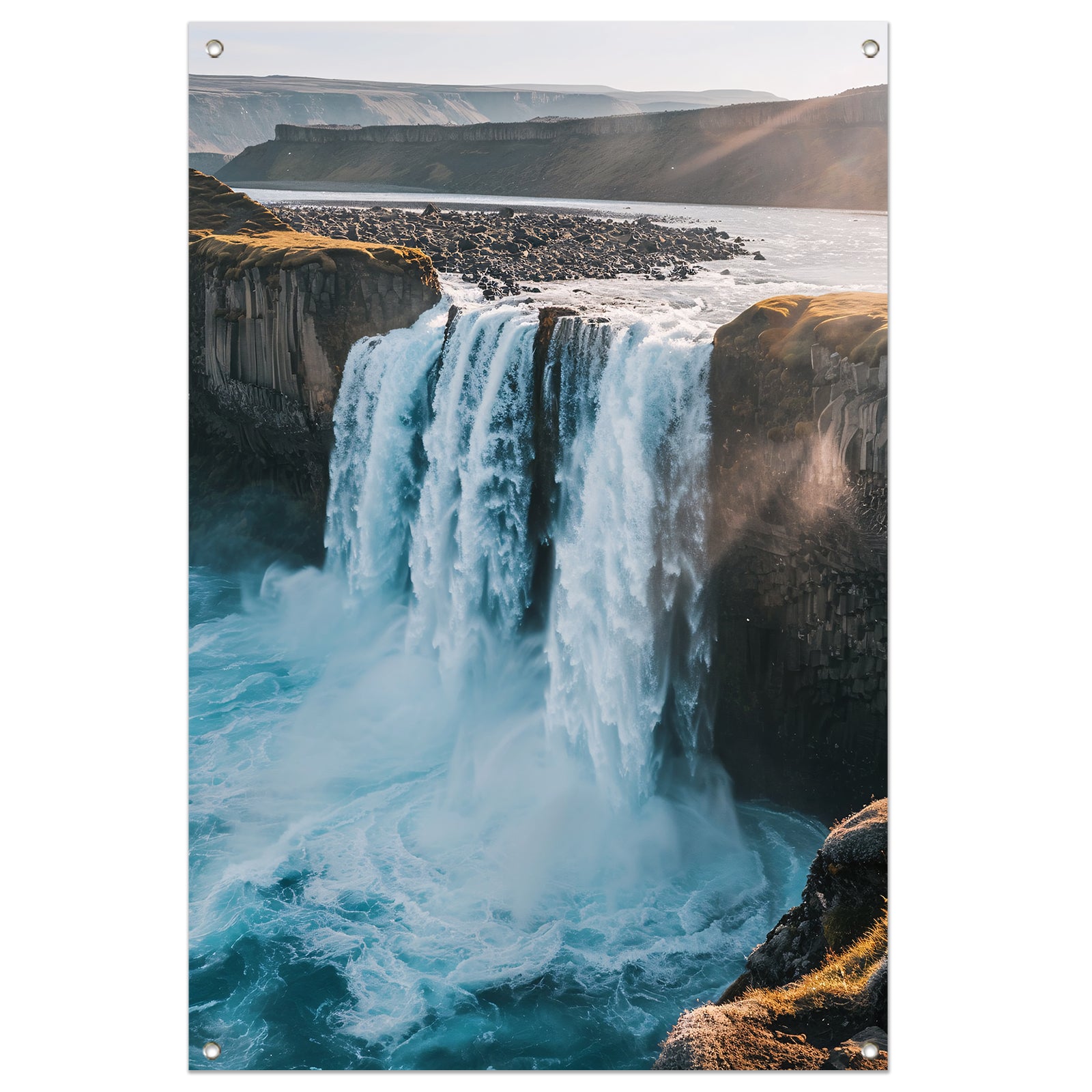 Majestueuze waterval in rotsachtig landschap tuinposter
