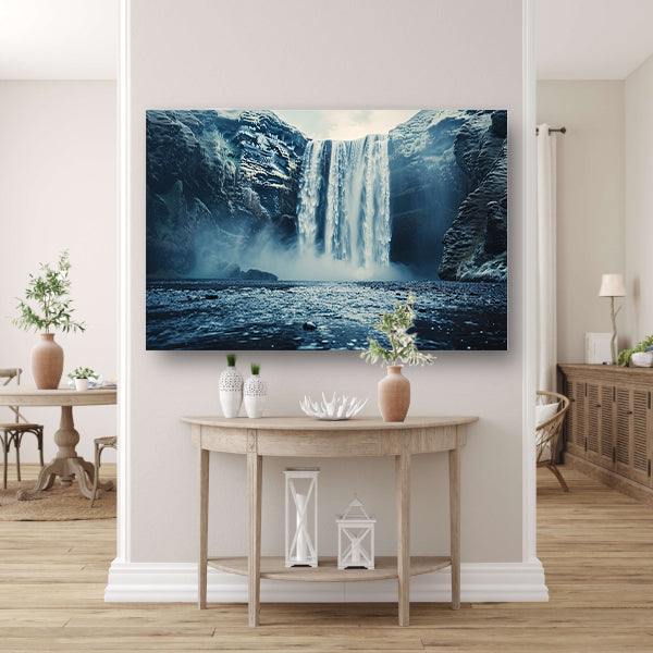 Majestueuze waterval met serene rotsformaties canvas