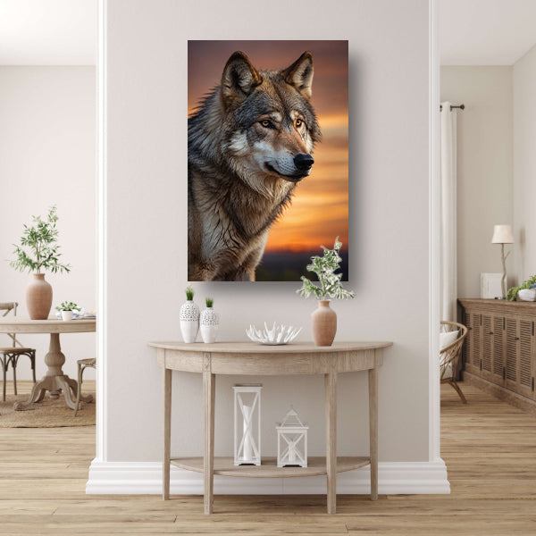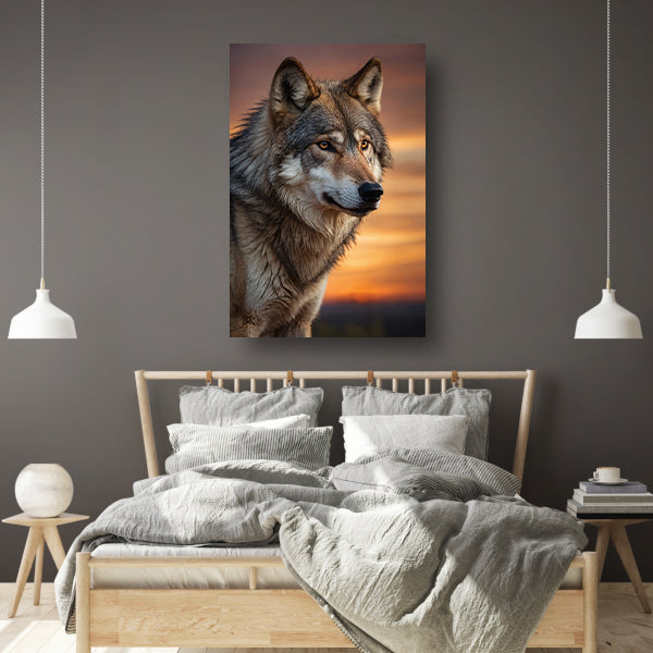 Majestueuze wolf bij prachtige zonsondergang canvas