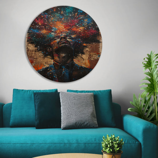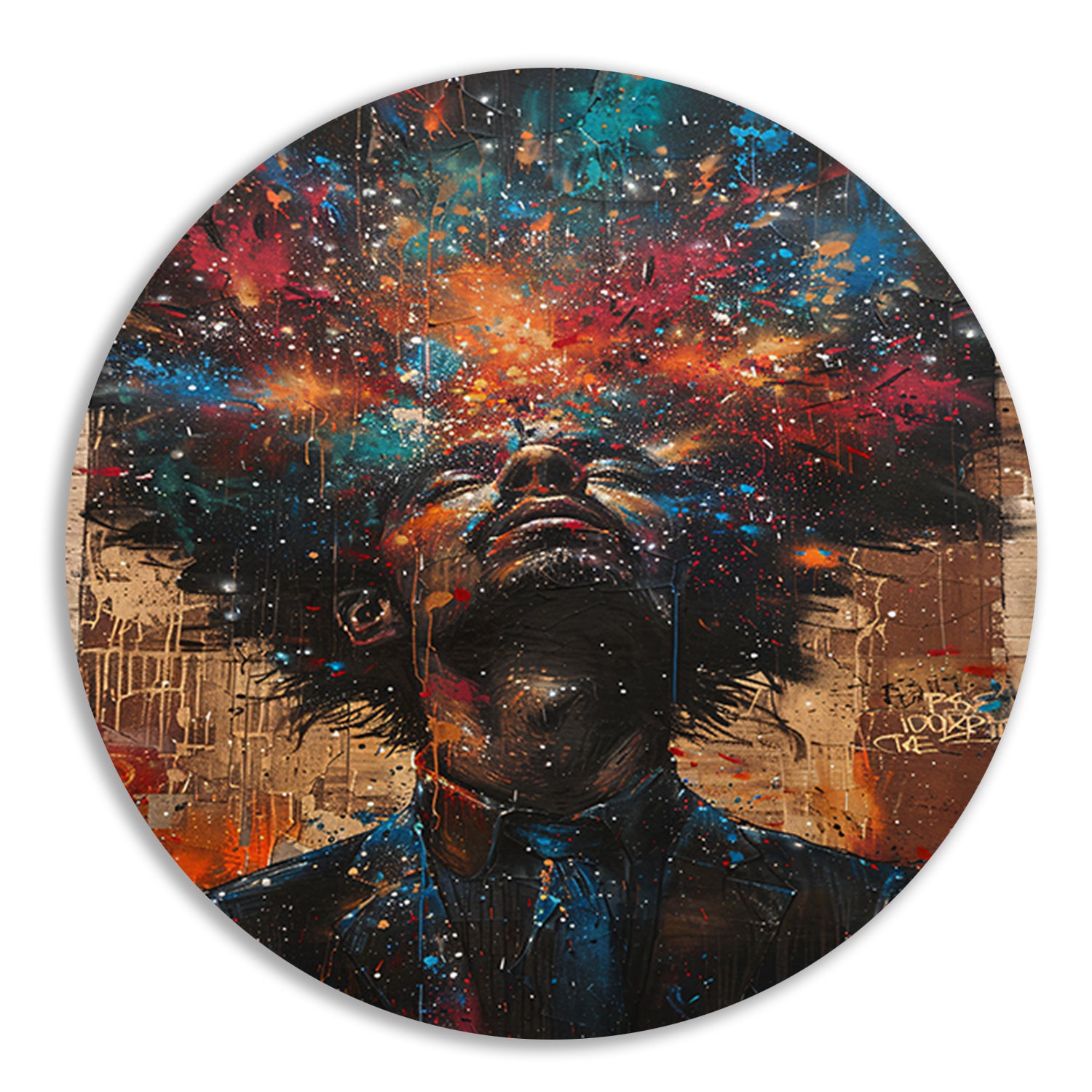 Man aanschouwt Kleurrijk kosmische explosie aluminium muurcirkel