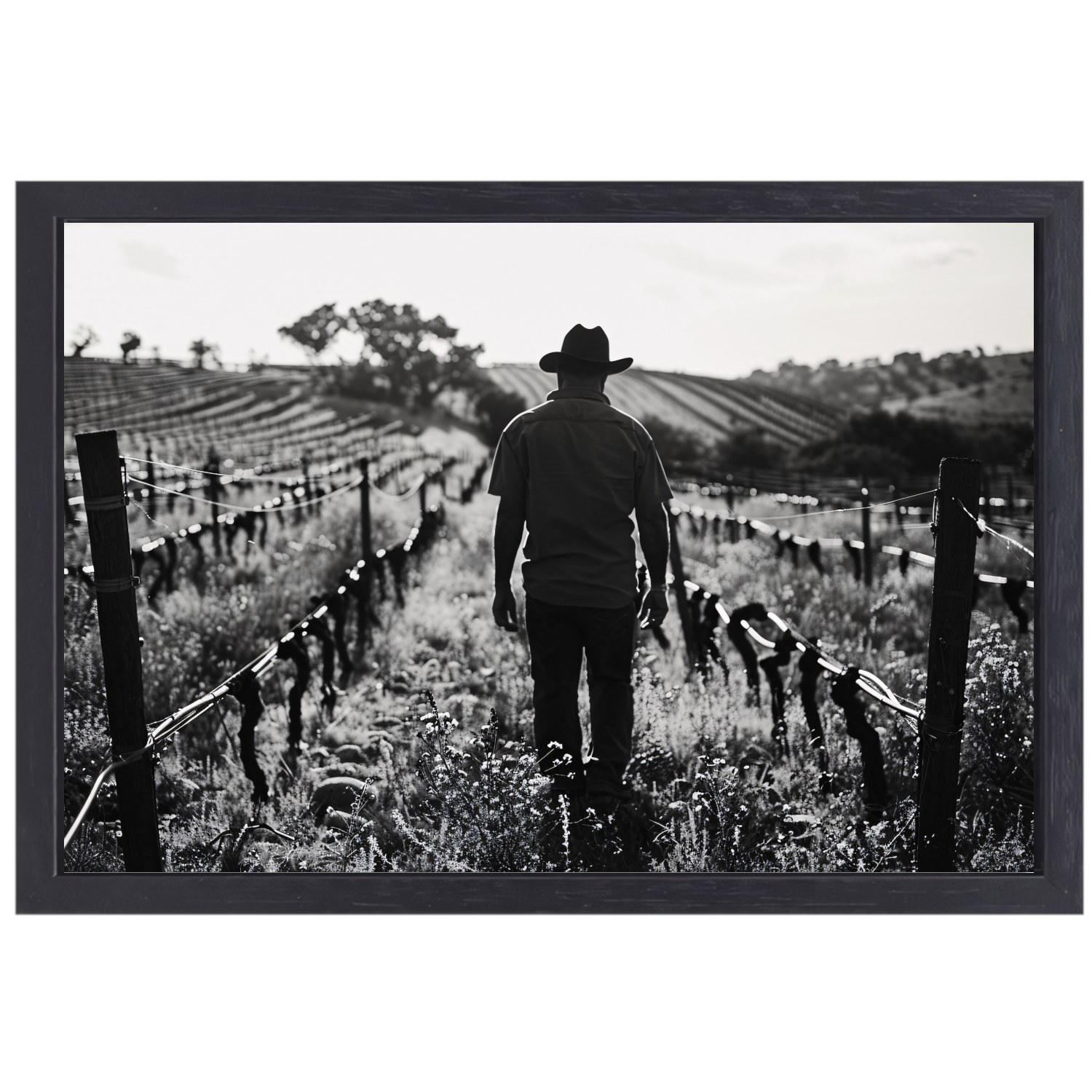 Man wandelt door zonovergoten wijngaard canvas met baklijst