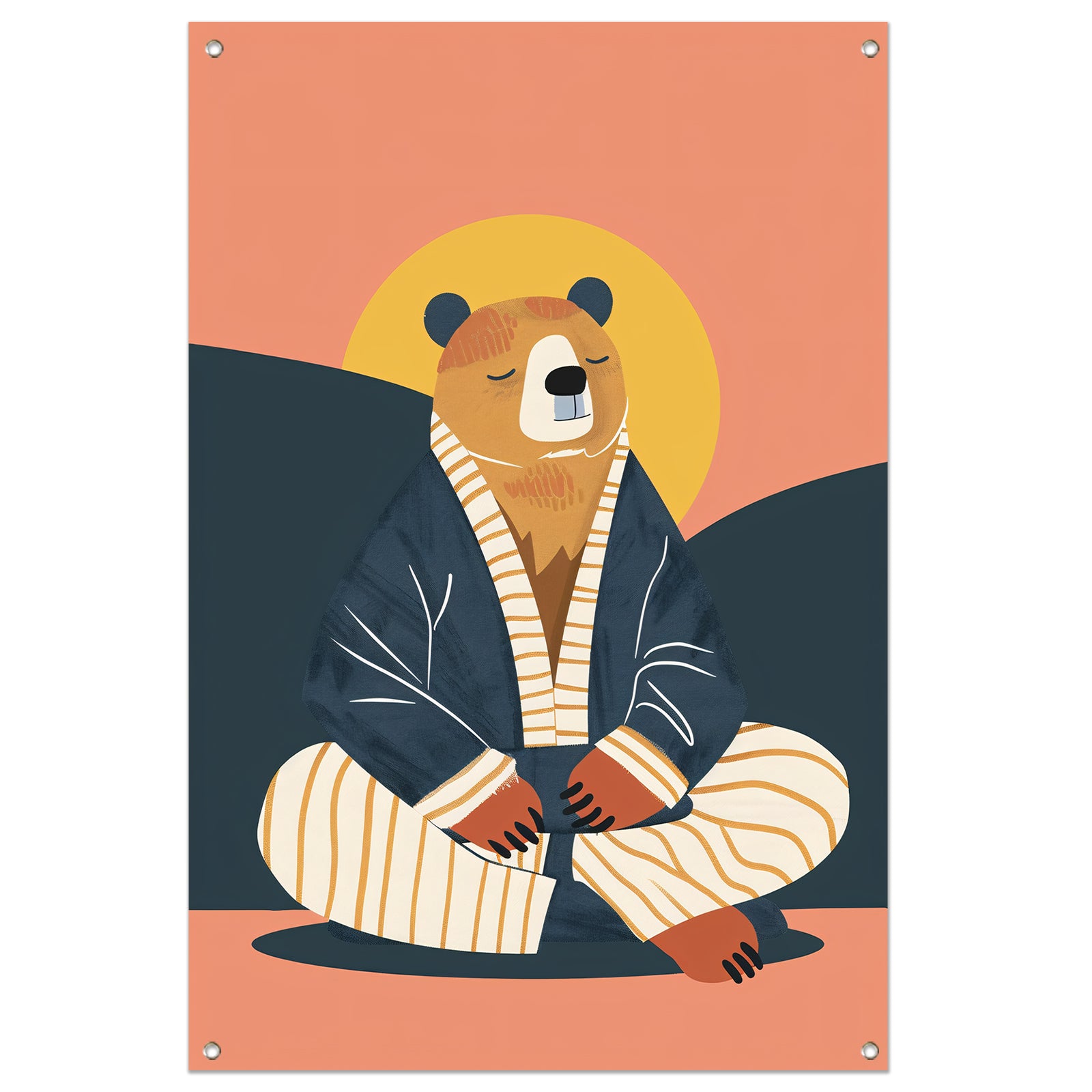 Mediterende Beer in Pyjama tuinposter