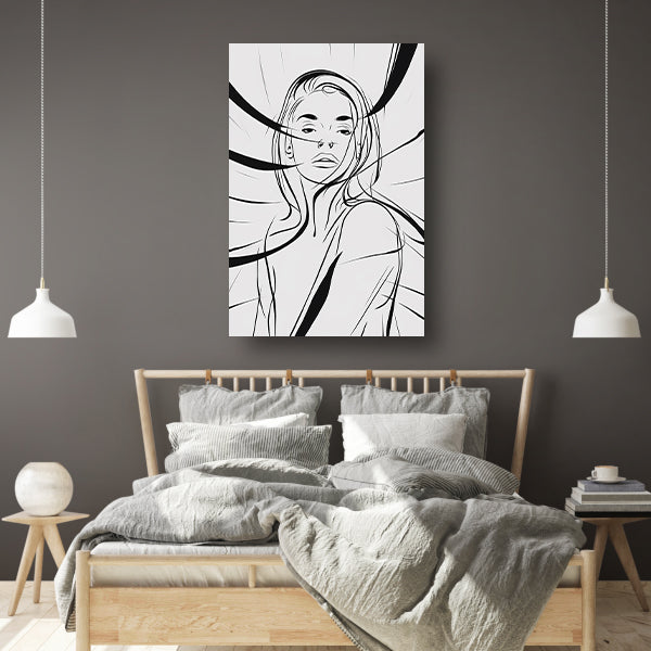 Minimale lijnillustratie van vrouwengezicht canvas met baklijst