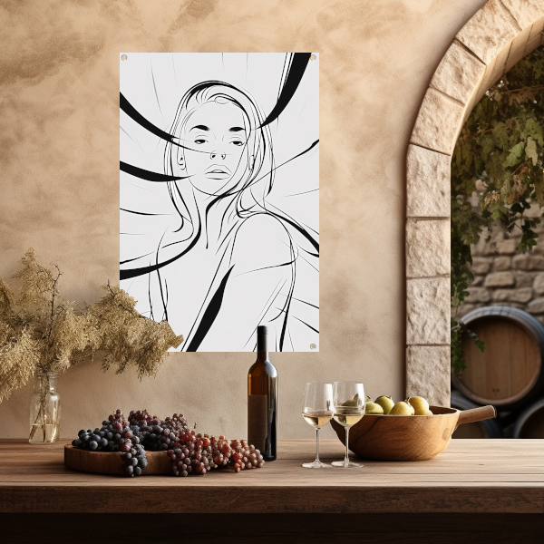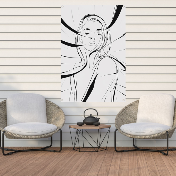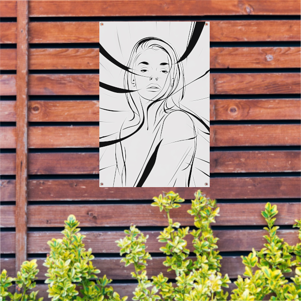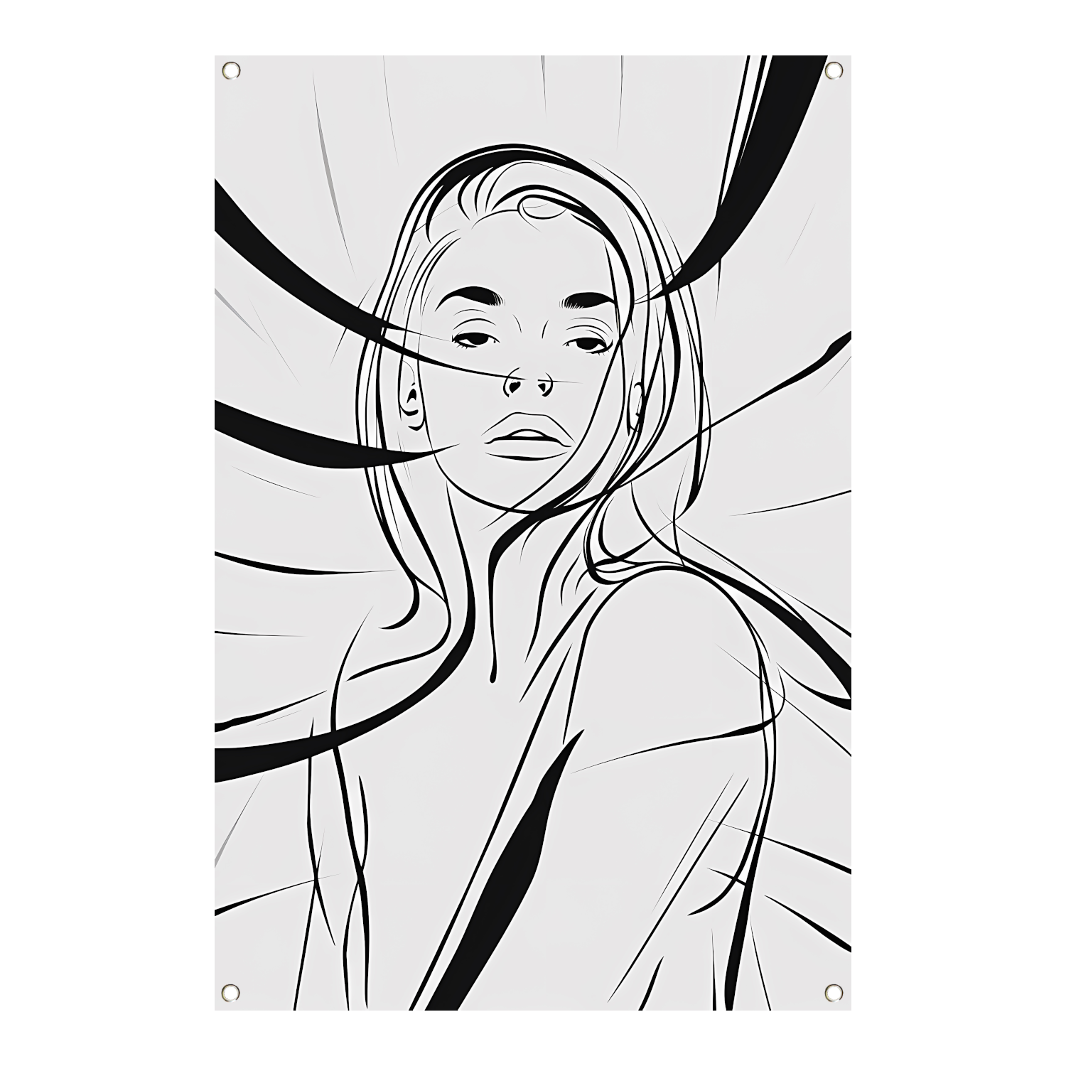 Minimale lijnillustratie van vrouwengezicht tuinposter