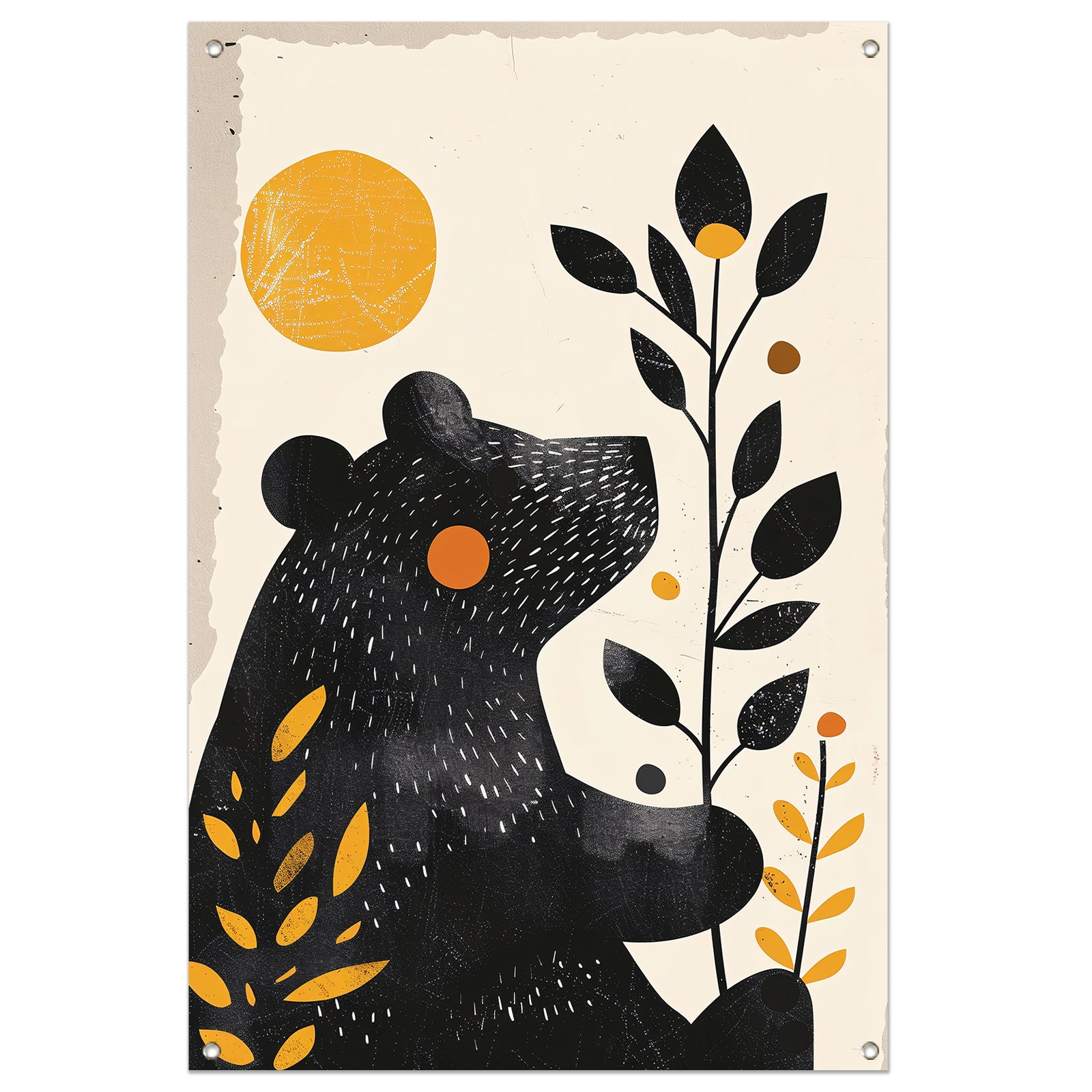 Minimalistisch beer met plant in zonlicht tuinposter