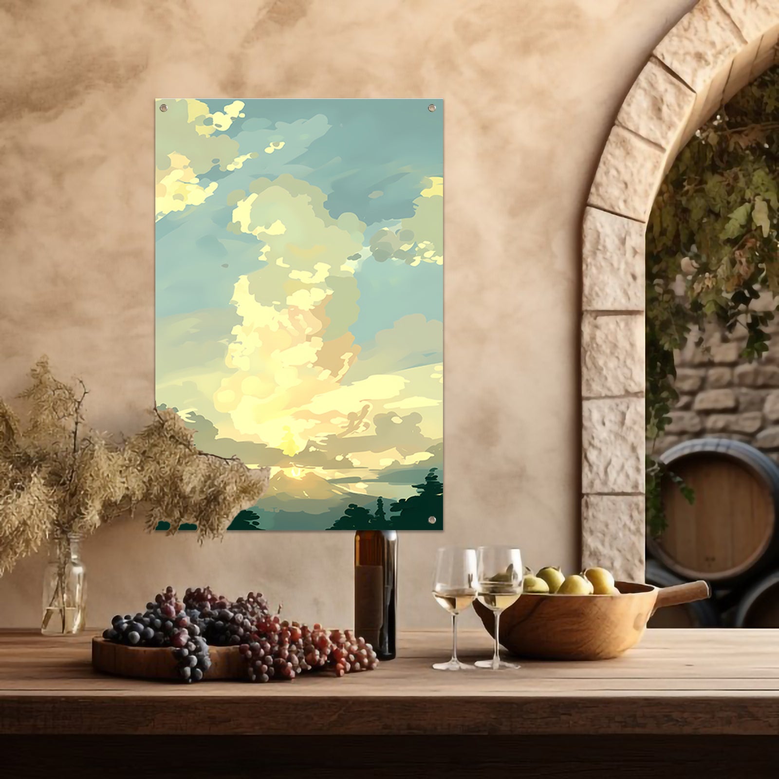 Minimalistisch Berglandschap bij Zonsopgang tuinposter