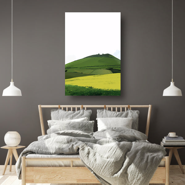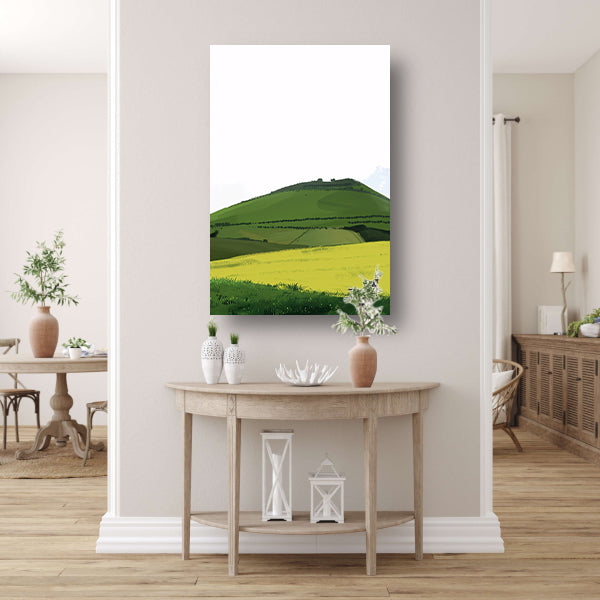 Minimalistisch groen heuvelachtig landschap schilderij acrylglas