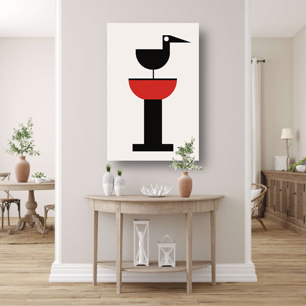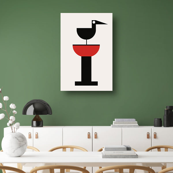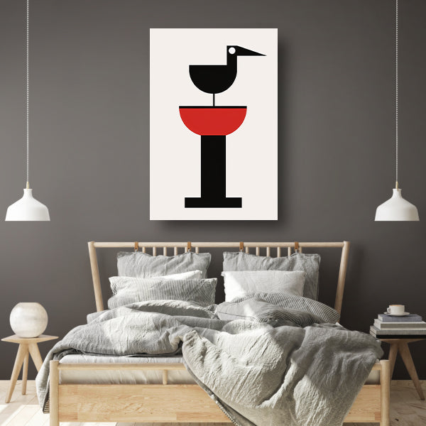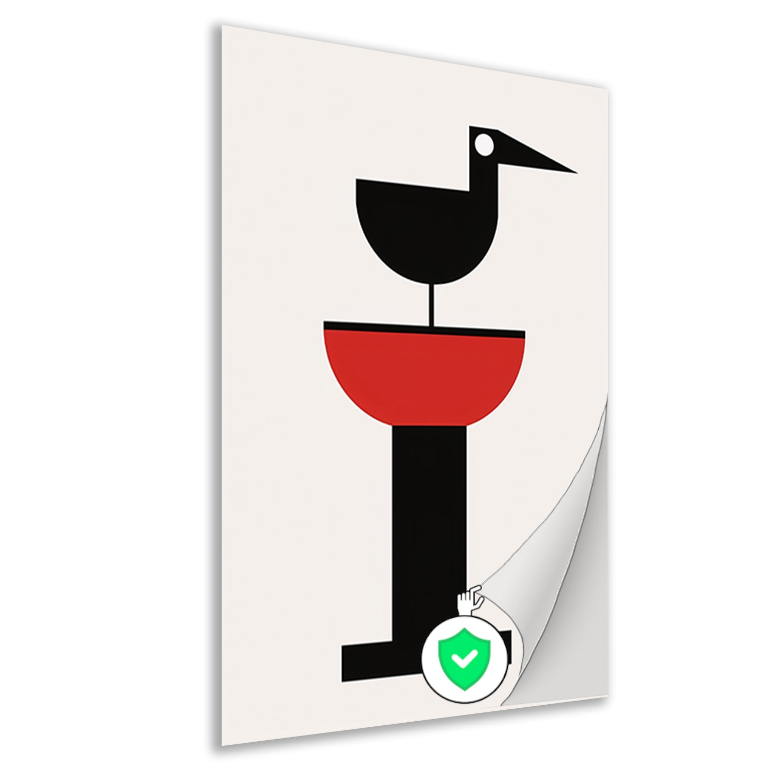 Minimalistisch Kunst: Vogel op Rode Voederbak poster