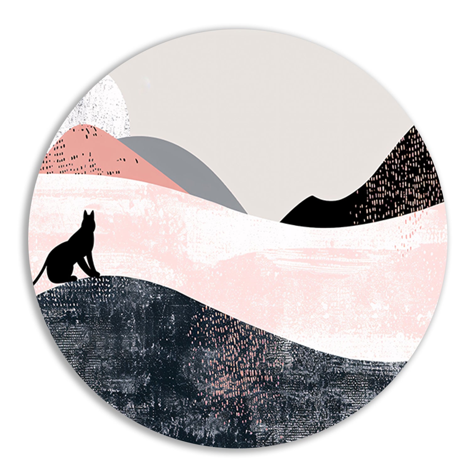 Minimalistisch kunstwerk van kat in abstract landschap aluminium muurcirkel