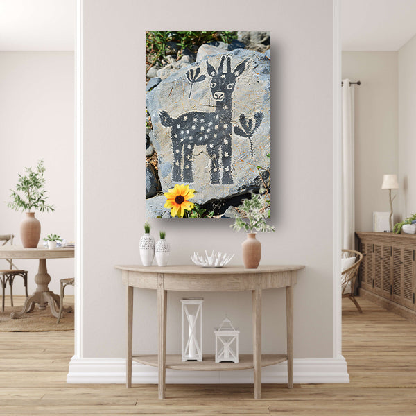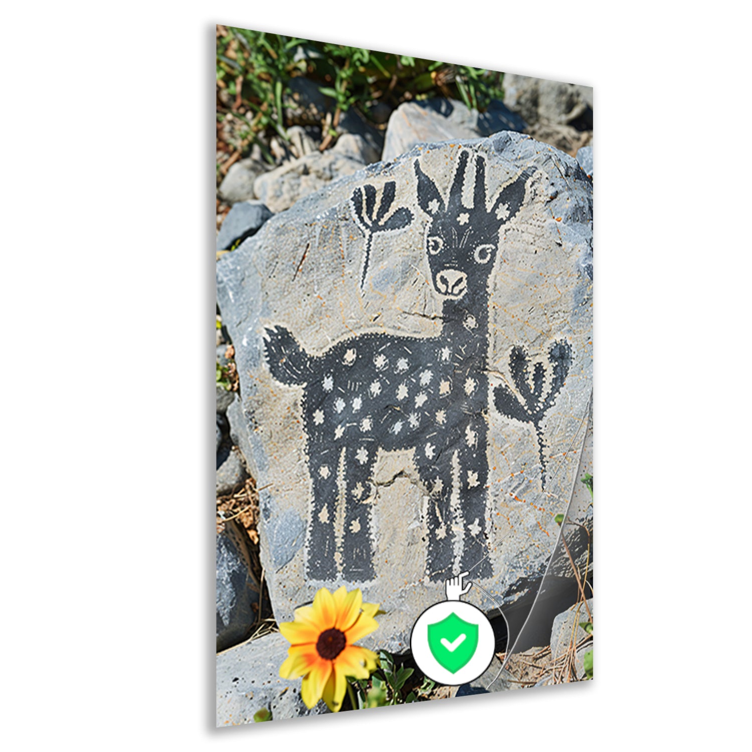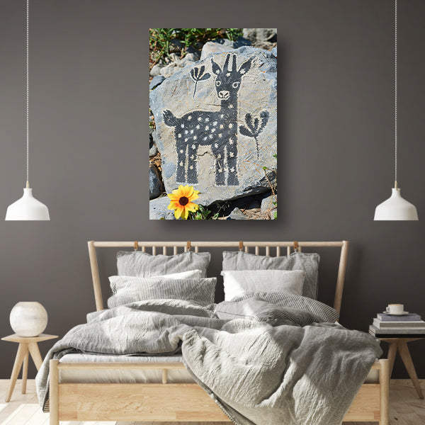 Minimalistisch Kunstwerk van Zwart-Wit Hert op Steen poster