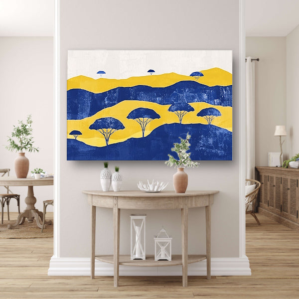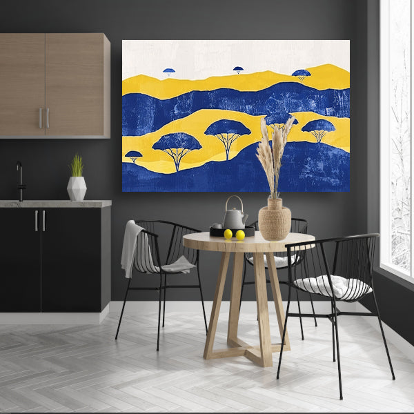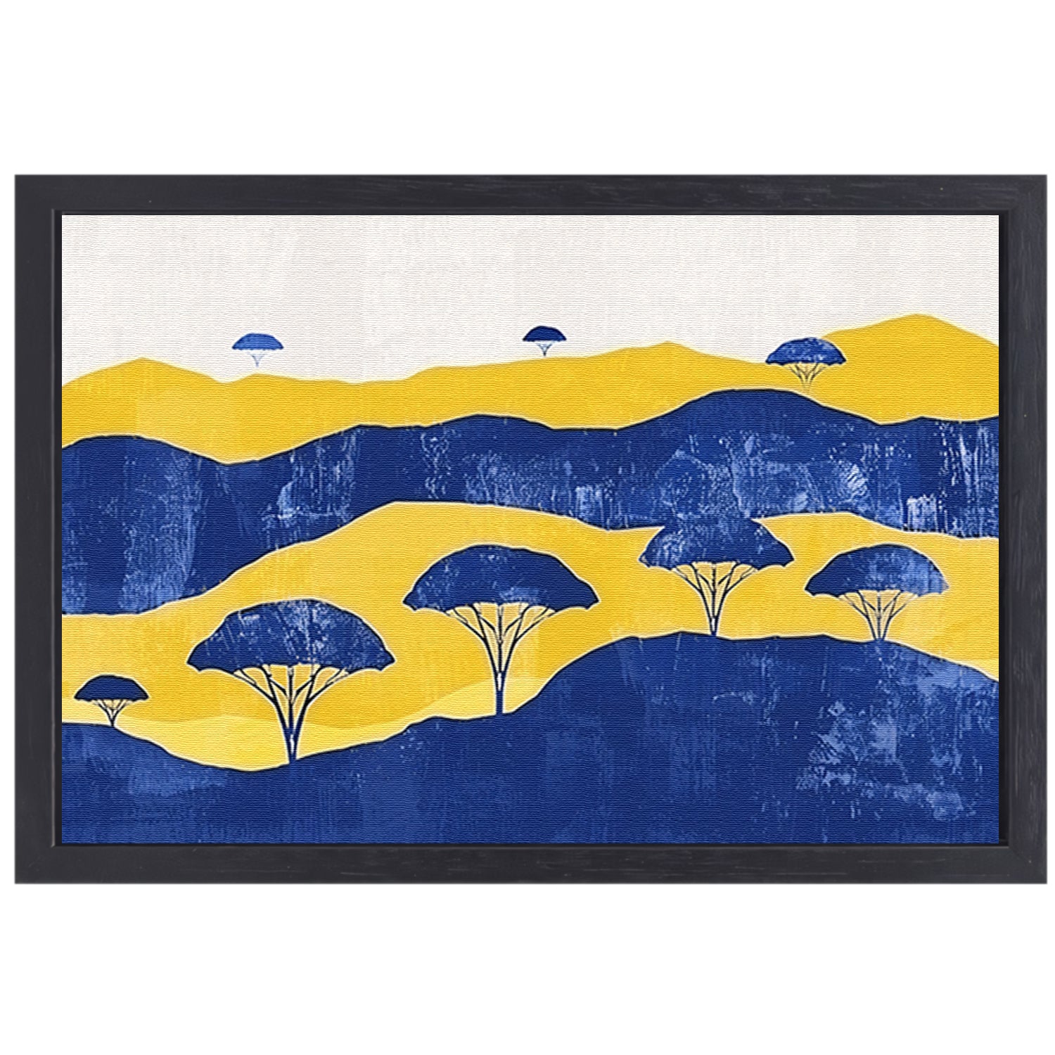 Minimalistisch landschap met bomen en heuvels canvas met baklijst