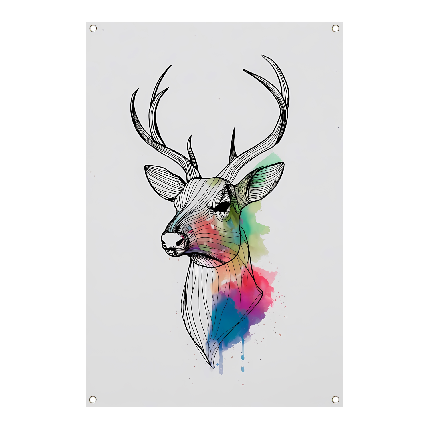 Minimalistisch lijnkunst hert in kleurexplosie tuinposter