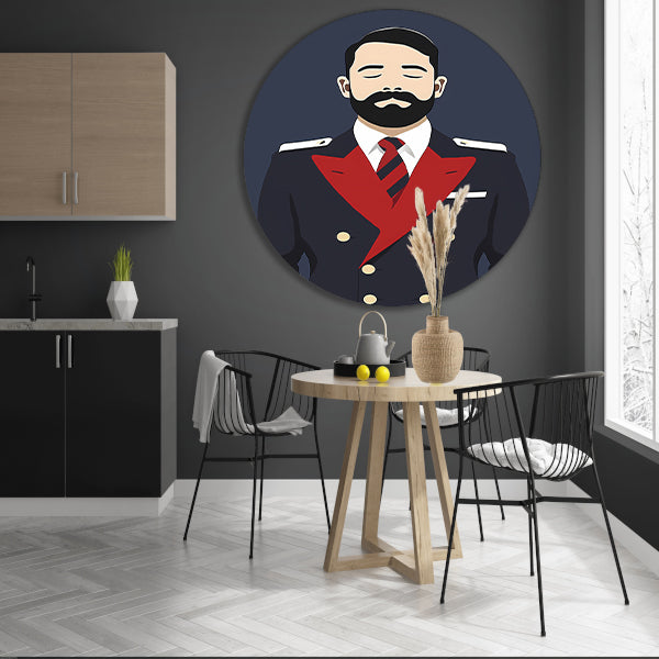Minimalistisch portret van man in uniform aluminium muurcirkel
