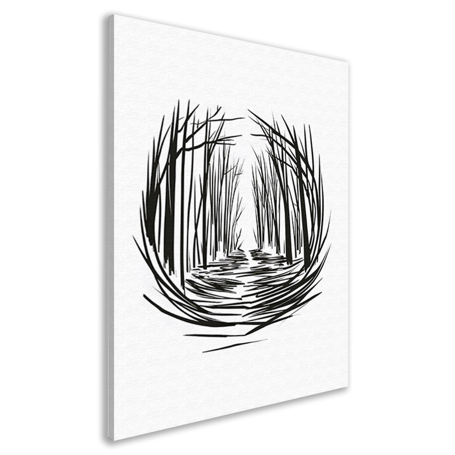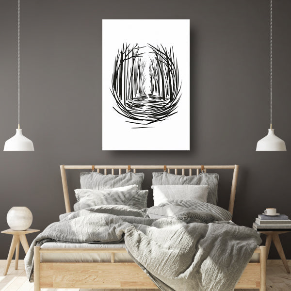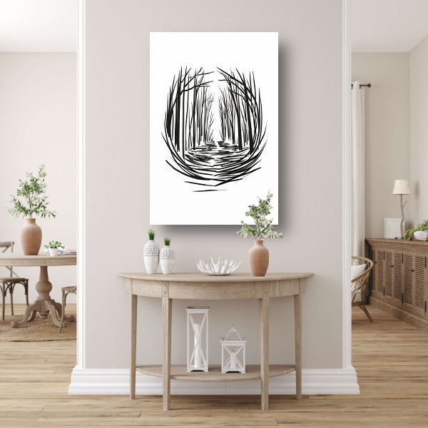Minimalistisch rivier door bos lijntekening canvas