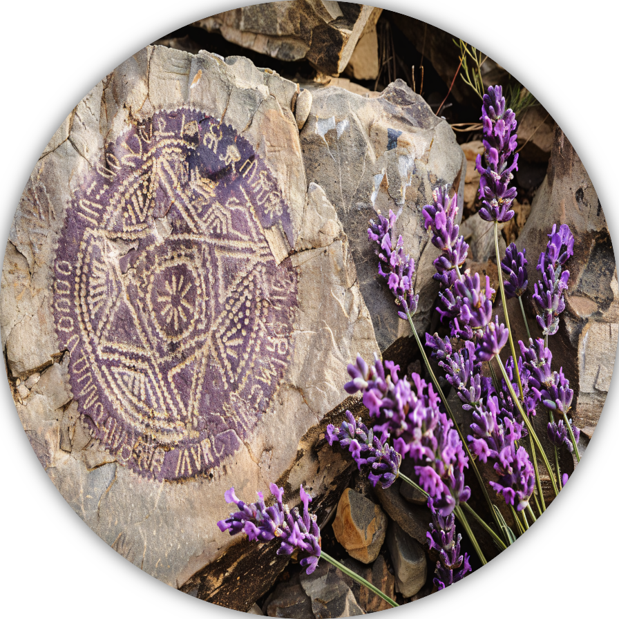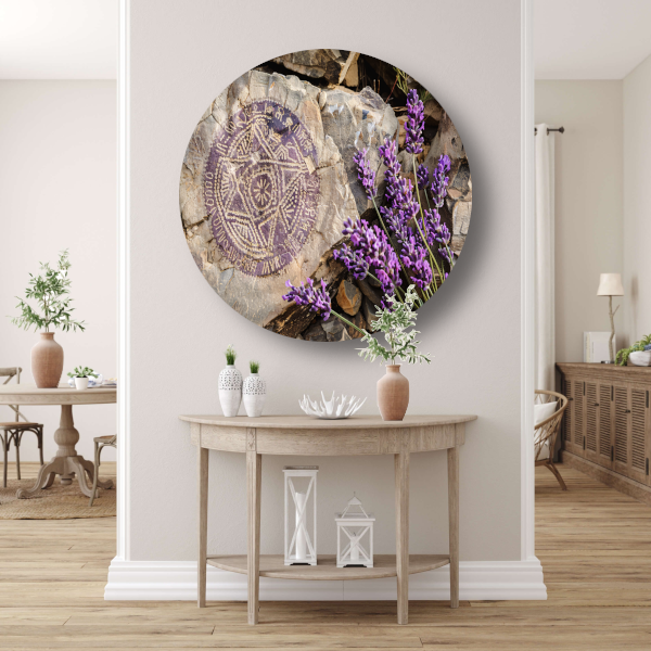 Minimalistisch schilderij stenen en bloemen aluminium muurcirkel