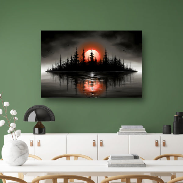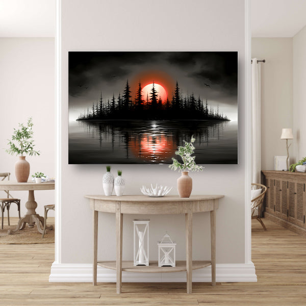 Minimalistisch schilderij van silhouet eiland en zonsopgang acrylglas