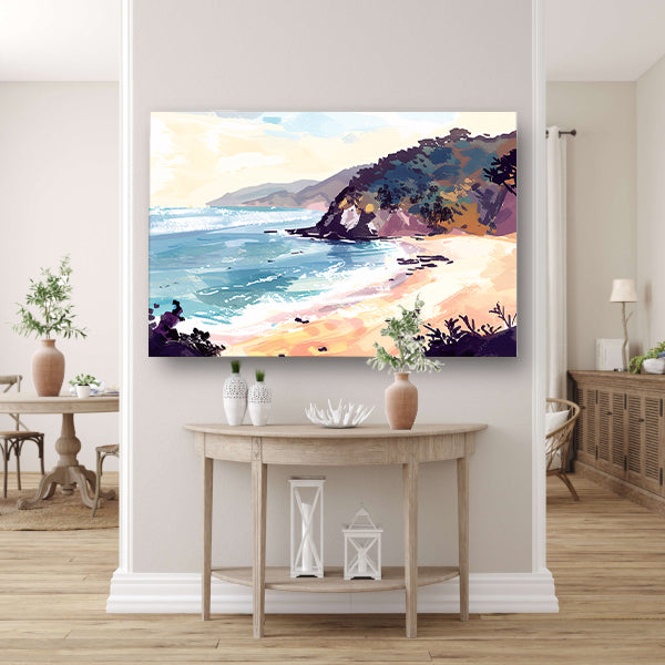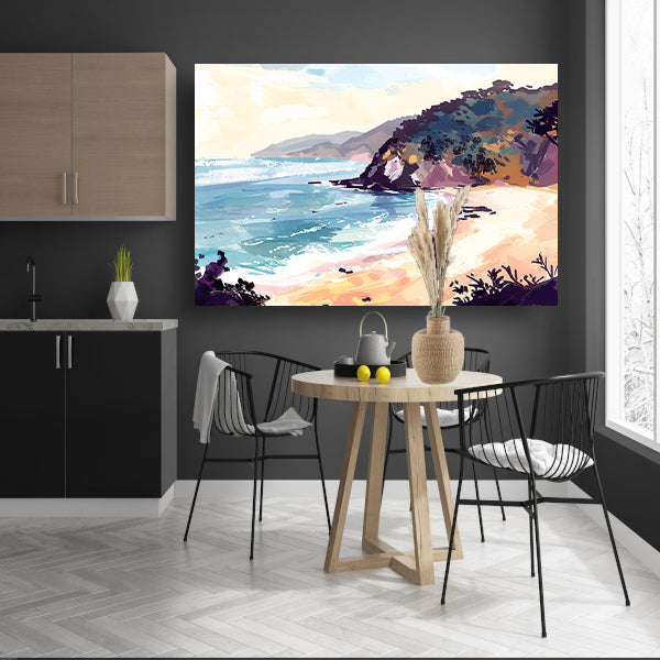 Minimalistisch schilderij van strand bij zonsopgang acrylglas