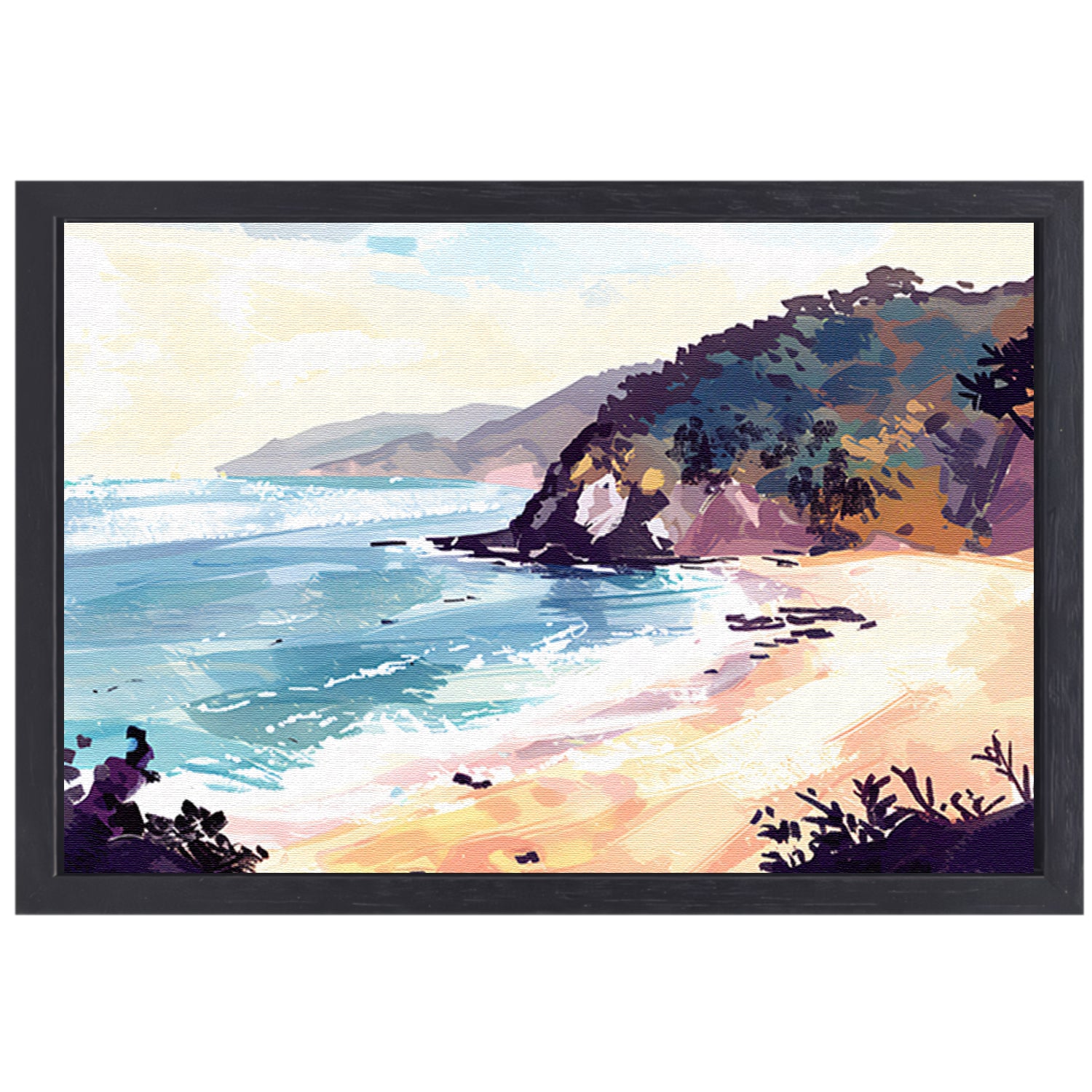 Minimalistisch schilderij van strand bij zonsopgang canvas met baklijst