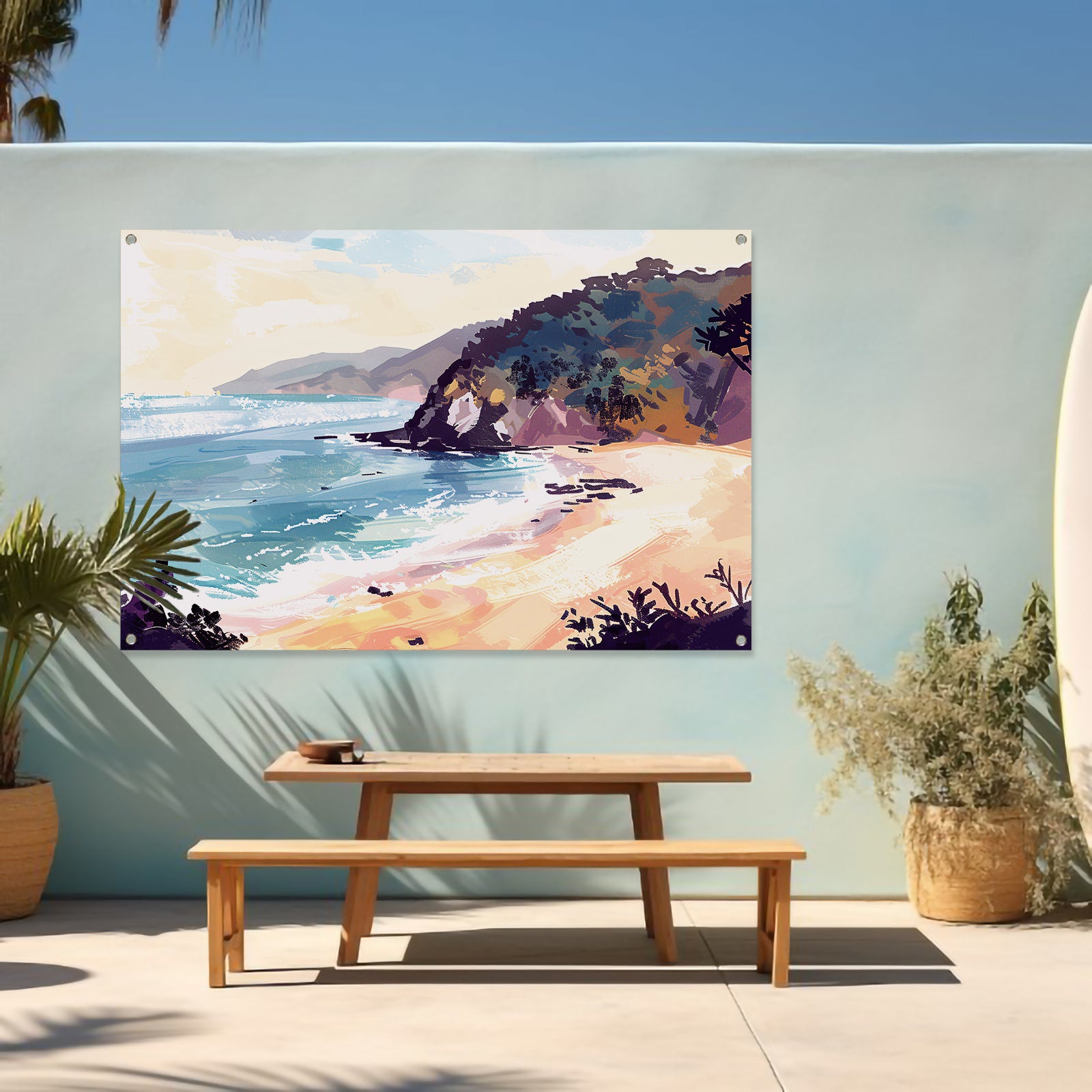 Onze tuinposters zijn UV- en waterbestendig, waardoor ze bestand zijn tegen zon en regen en hun kleuren langdurig mooi blijven. Alle tuinposters van De Muurdecoratie zijn voorzien van ringen in de hoeken, zodat je ze eenvoudig kunt ophangen. Let op: onze tuinposters worden niet met ophangsysteem geleverd.