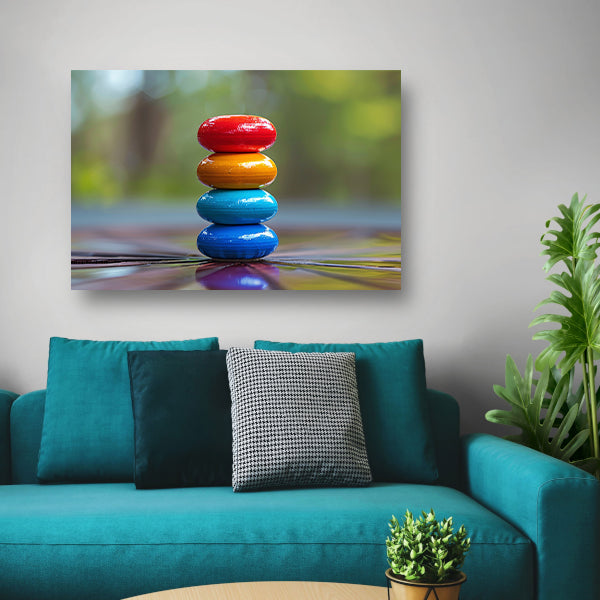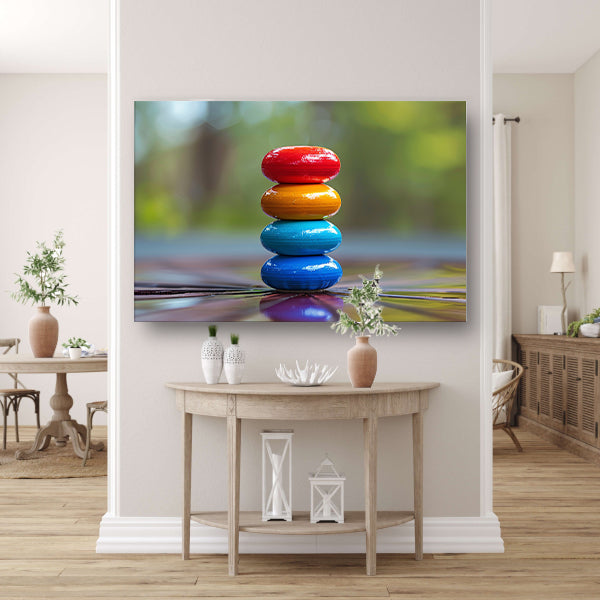 Dankzij de opvallende diepte en helderheid van het acrylglas, lijkt het alsof de stenen stapeling echt tot leven komt. De afbeelding is scherp en kleurrijk, waardoor elk detail goed zichtbaar is.