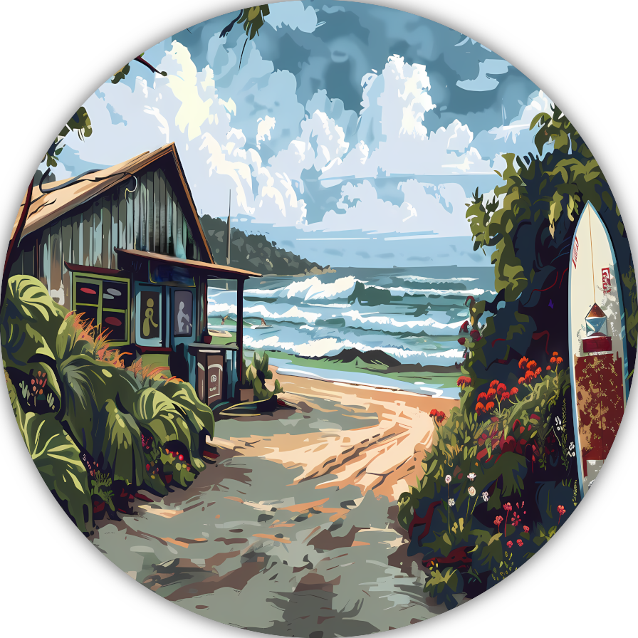 Minimalistisch Strandhuis met Bomen aluminium muurcirkel