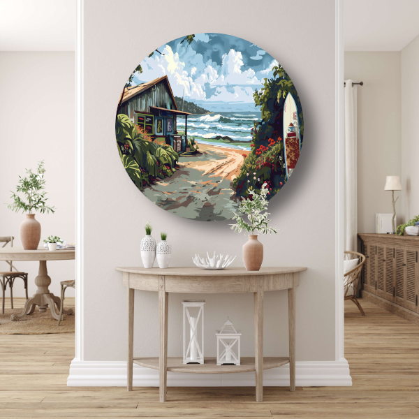 Minimalistisch Strandhuis met Bomen forex muurcirkel