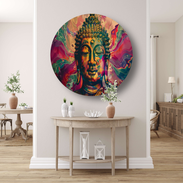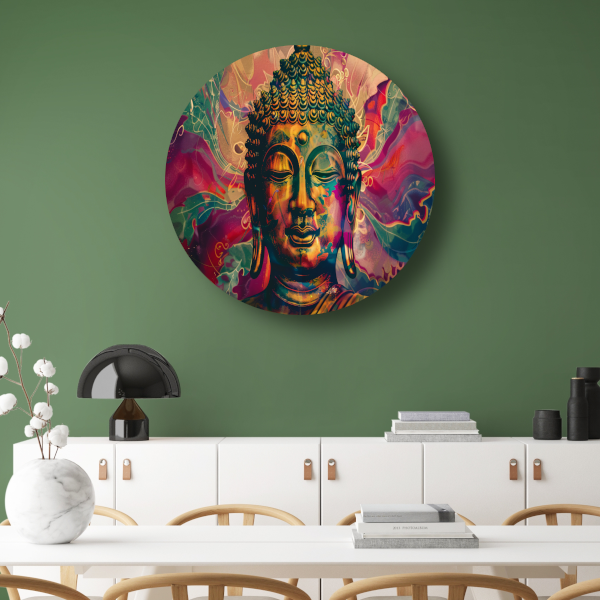 Minimalistische Boeddha Lijntekening aluminium muurcirkel