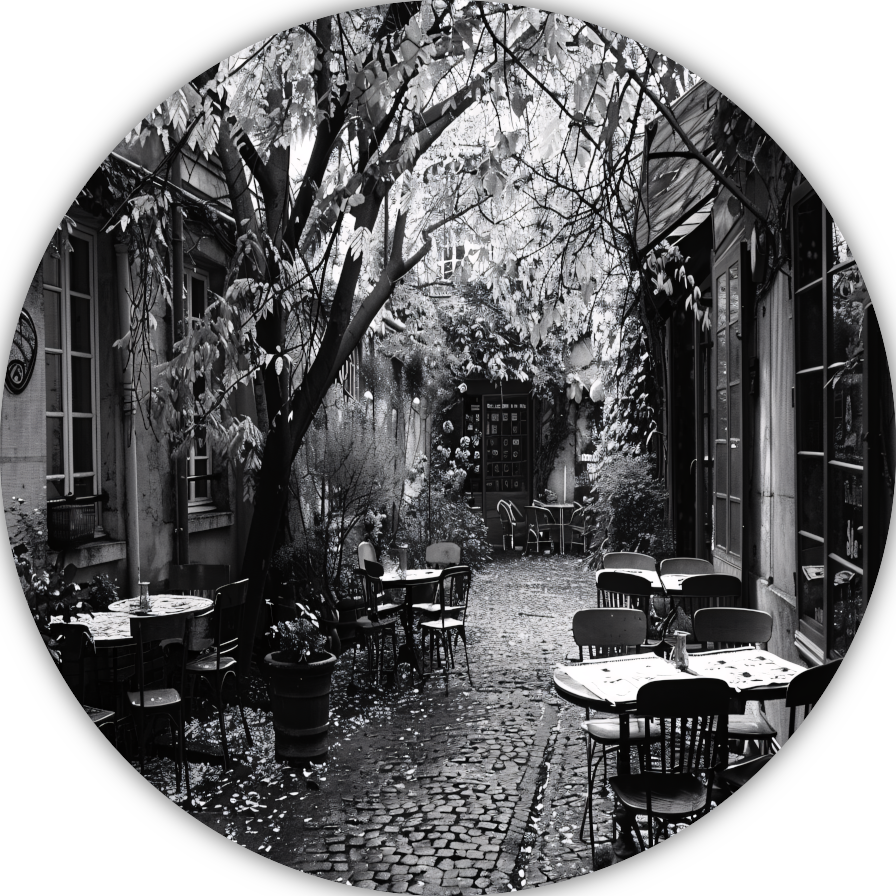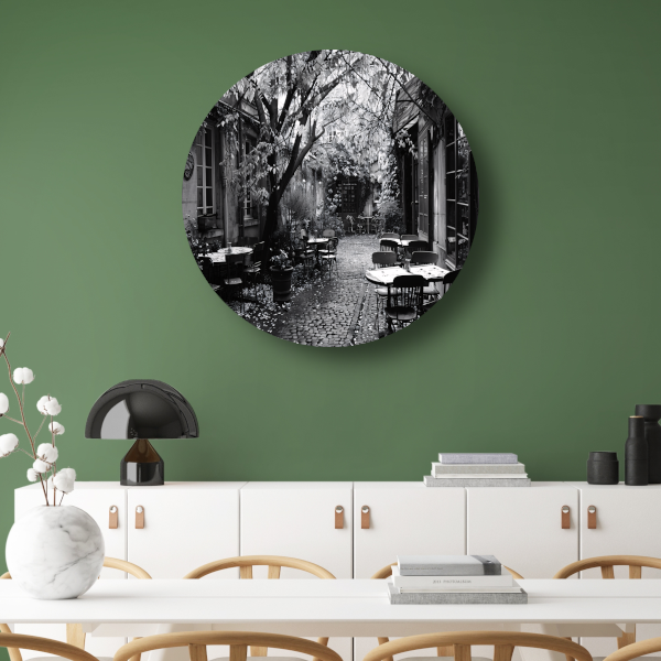 Minimalistische Buitenplaats met Stoelen aluminium muurcirkel