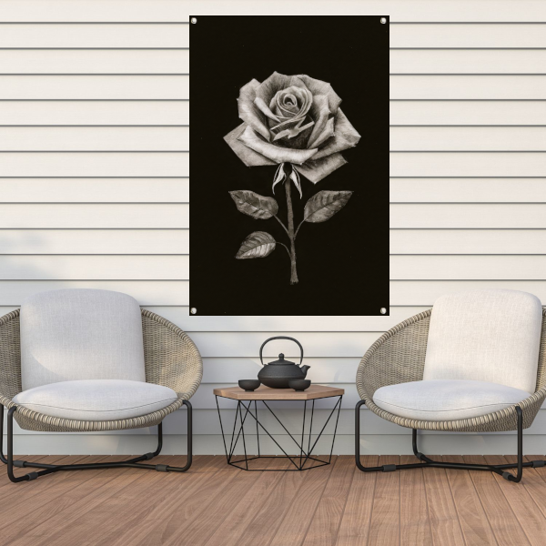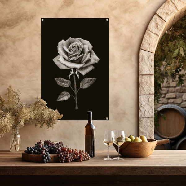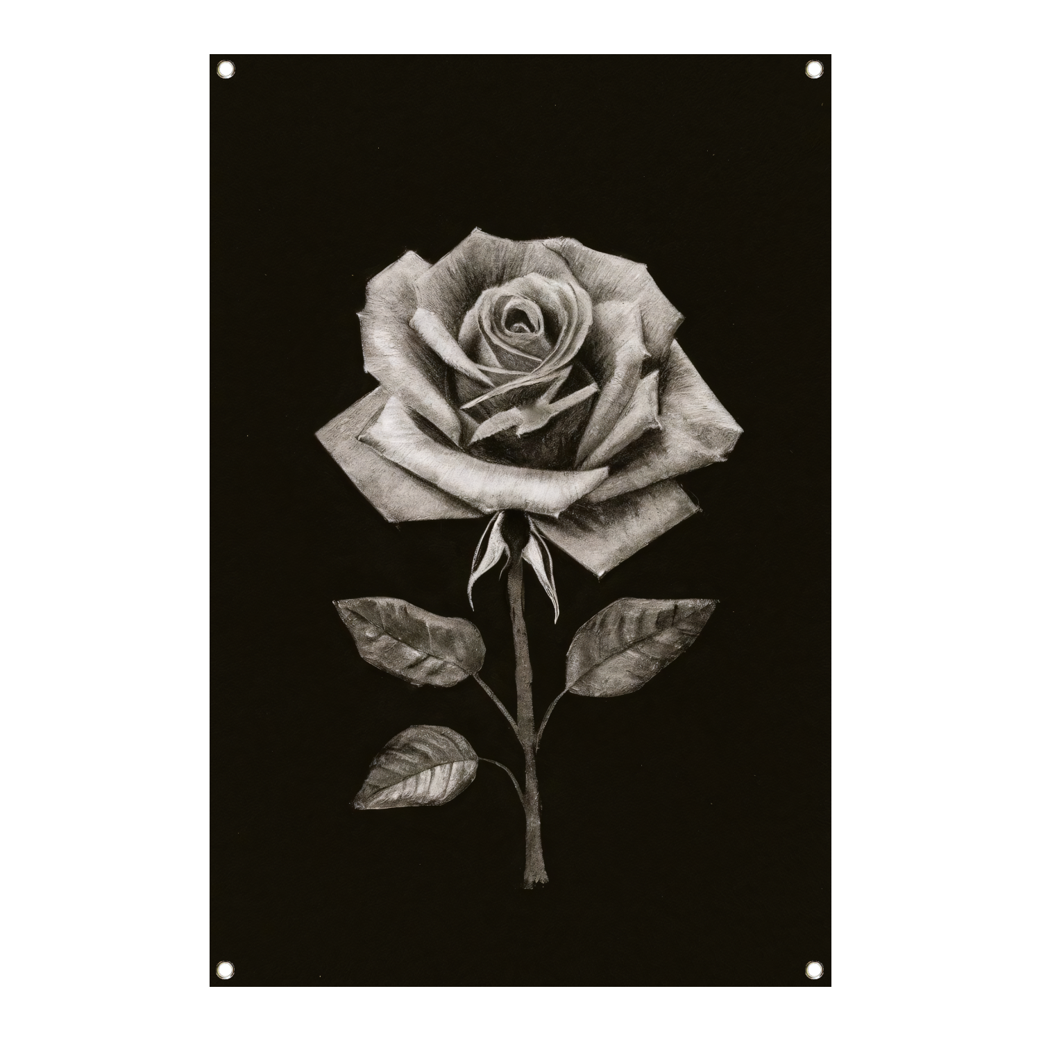 Minimalistische Charcoal Tekening van een Roos tuinposter