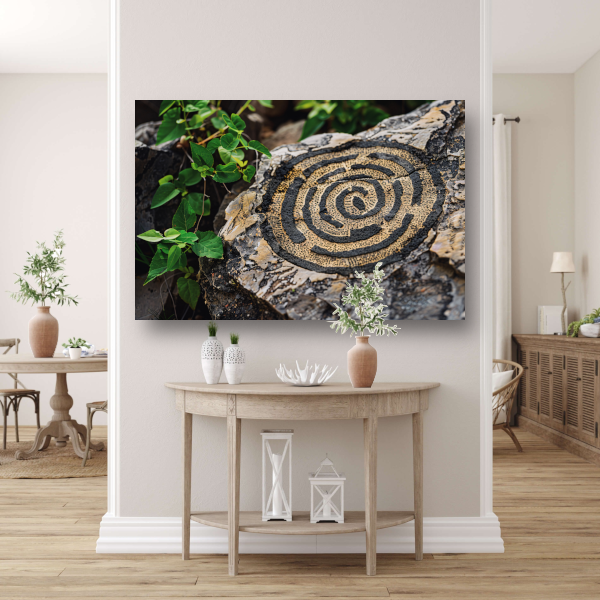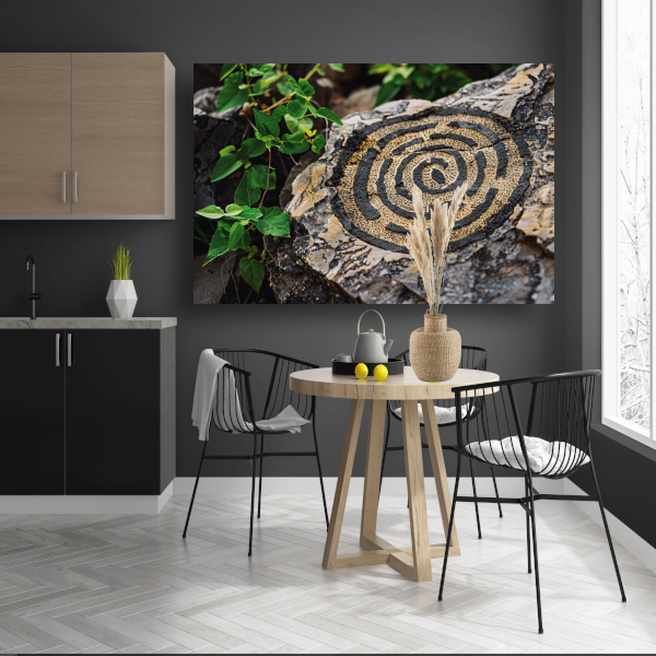 Dit kunstwerk is verkrijgbaar in diverse maten, waardoor het perfect is voor elke ruimte, van een kleine gang tot een grote woonkamer. Het acrylglas zorgt voor een luxe uitstraling en de steen voegt een natuurlijk element toe aan het design.