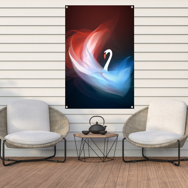De stijl van deze tuinposter is strak en modern, waardoor het goed past bij een minimalistische tuininrichting. Het thema van de poster is abstract en laat ruimte voor eigen interpretatie. Hierdoor past het bij verschillende tuinstijlen en kan het een persoonlijke touch geven aan jouw buitenruimte.