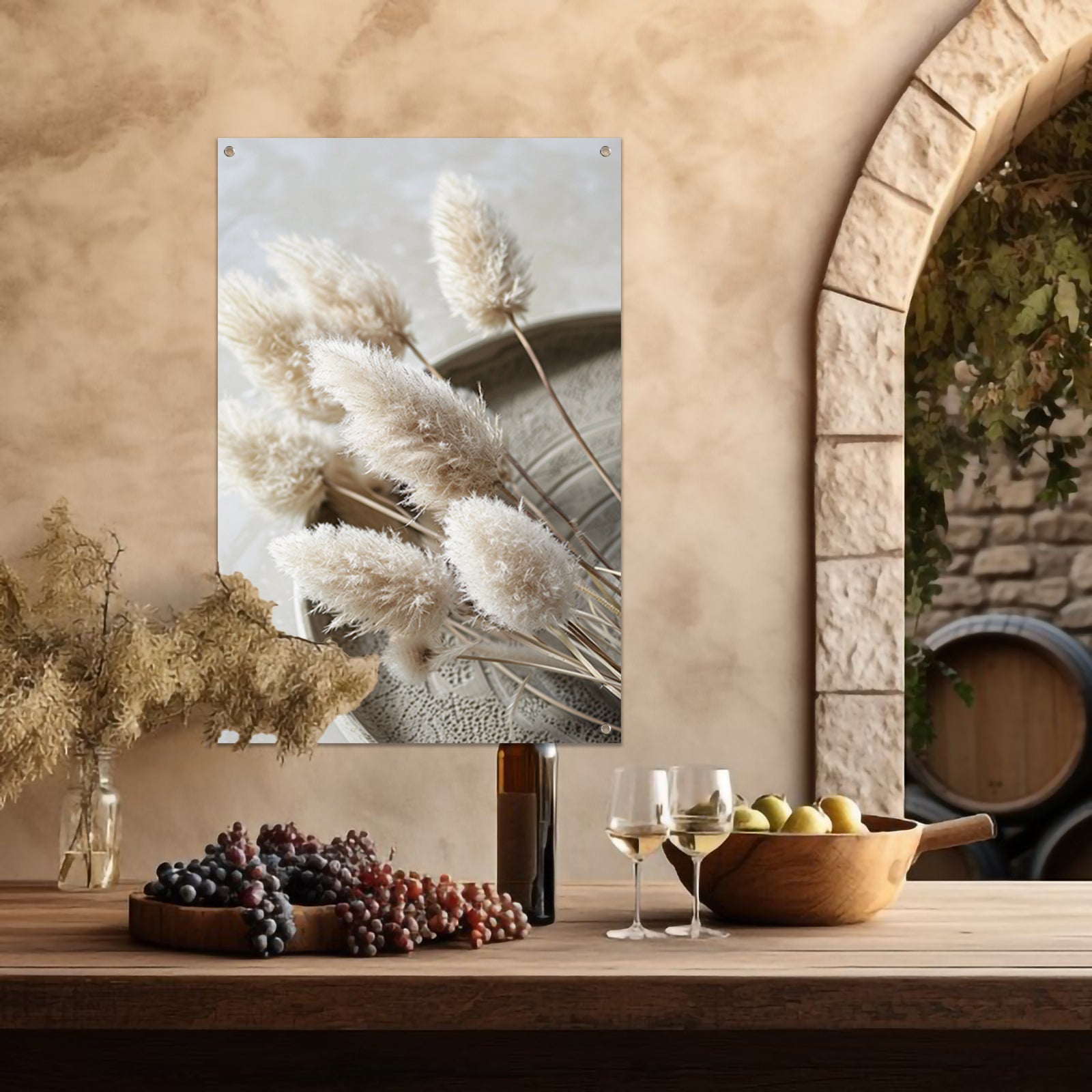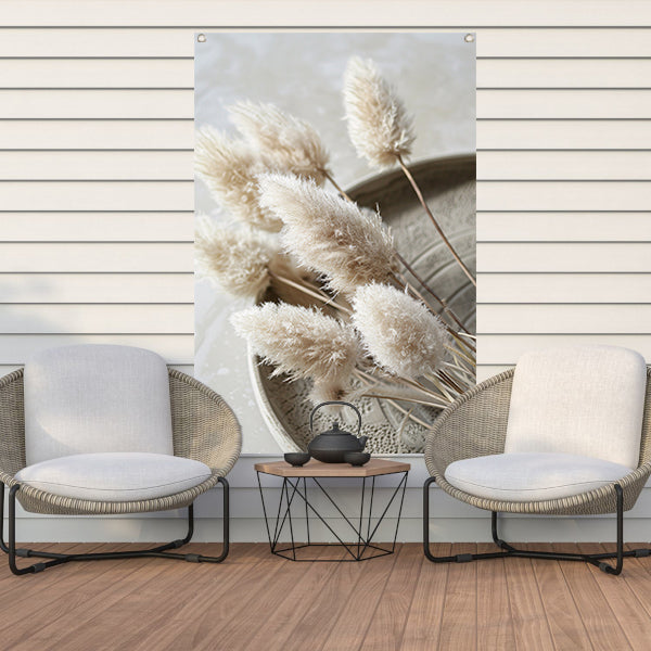 Minimalistische droogbloemen op schaal tuinposter