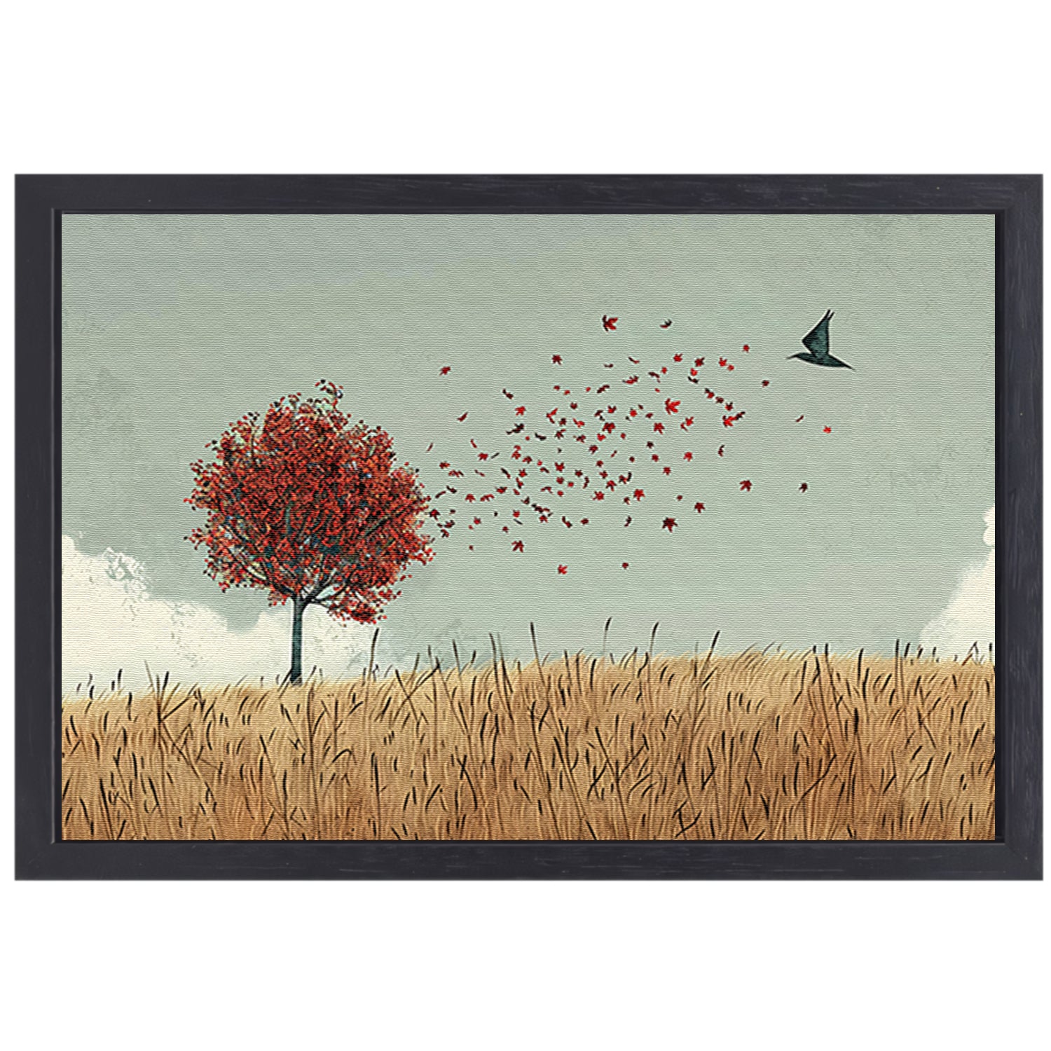 Minimalistische herfstboom met dwarrelende bladeren canvas met baklijst