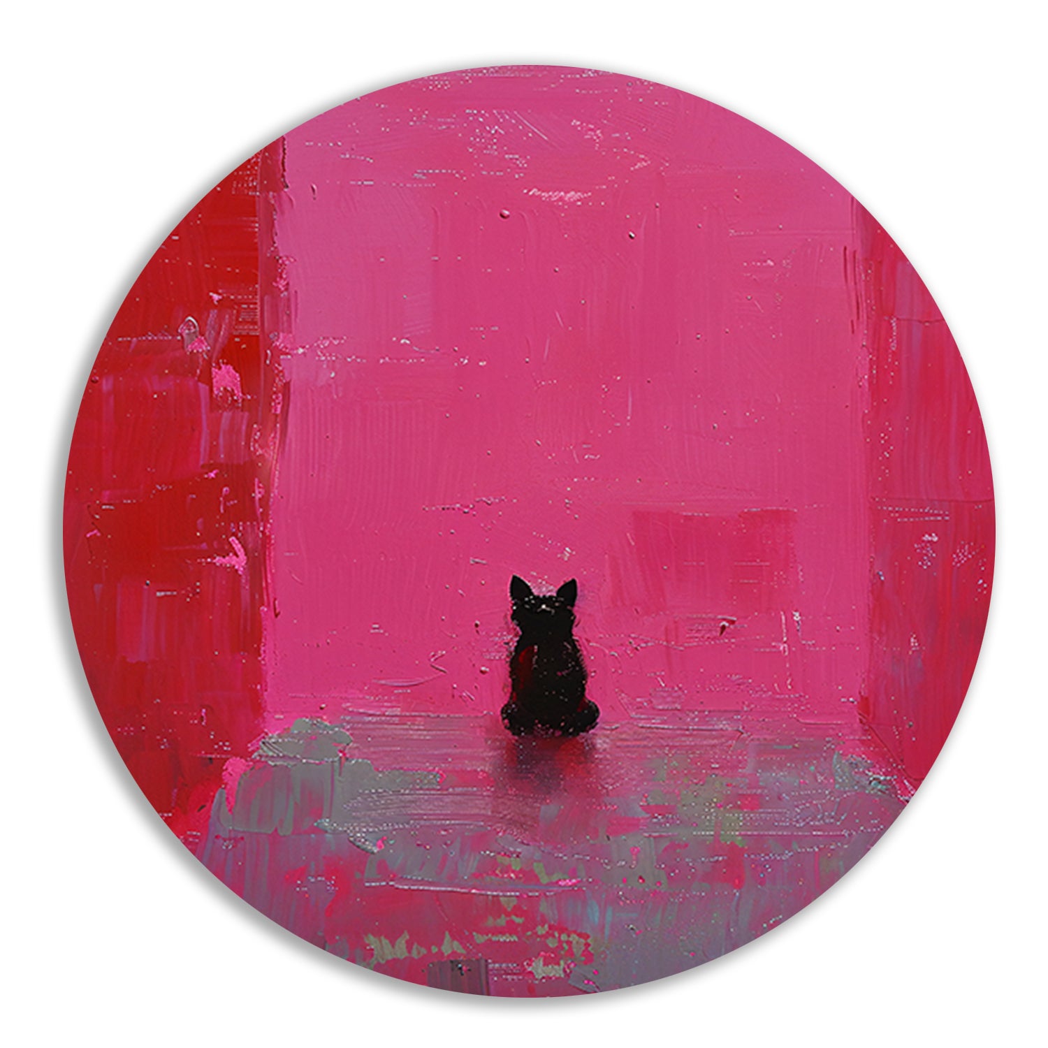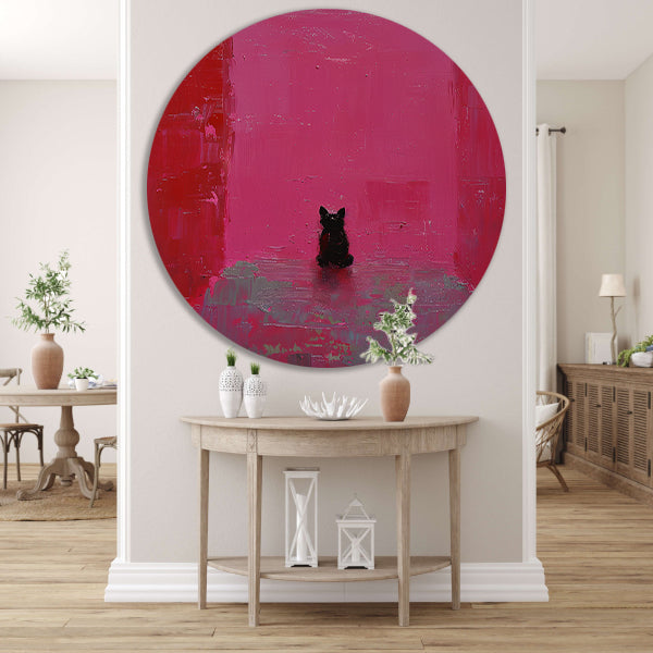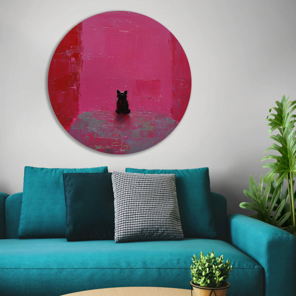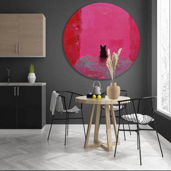Minimalistische hond tegen roze achtergrond schilderij aluminium muurcirkel