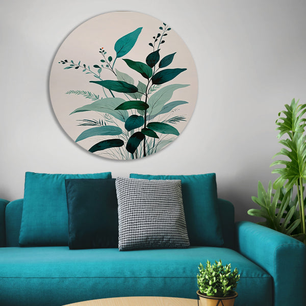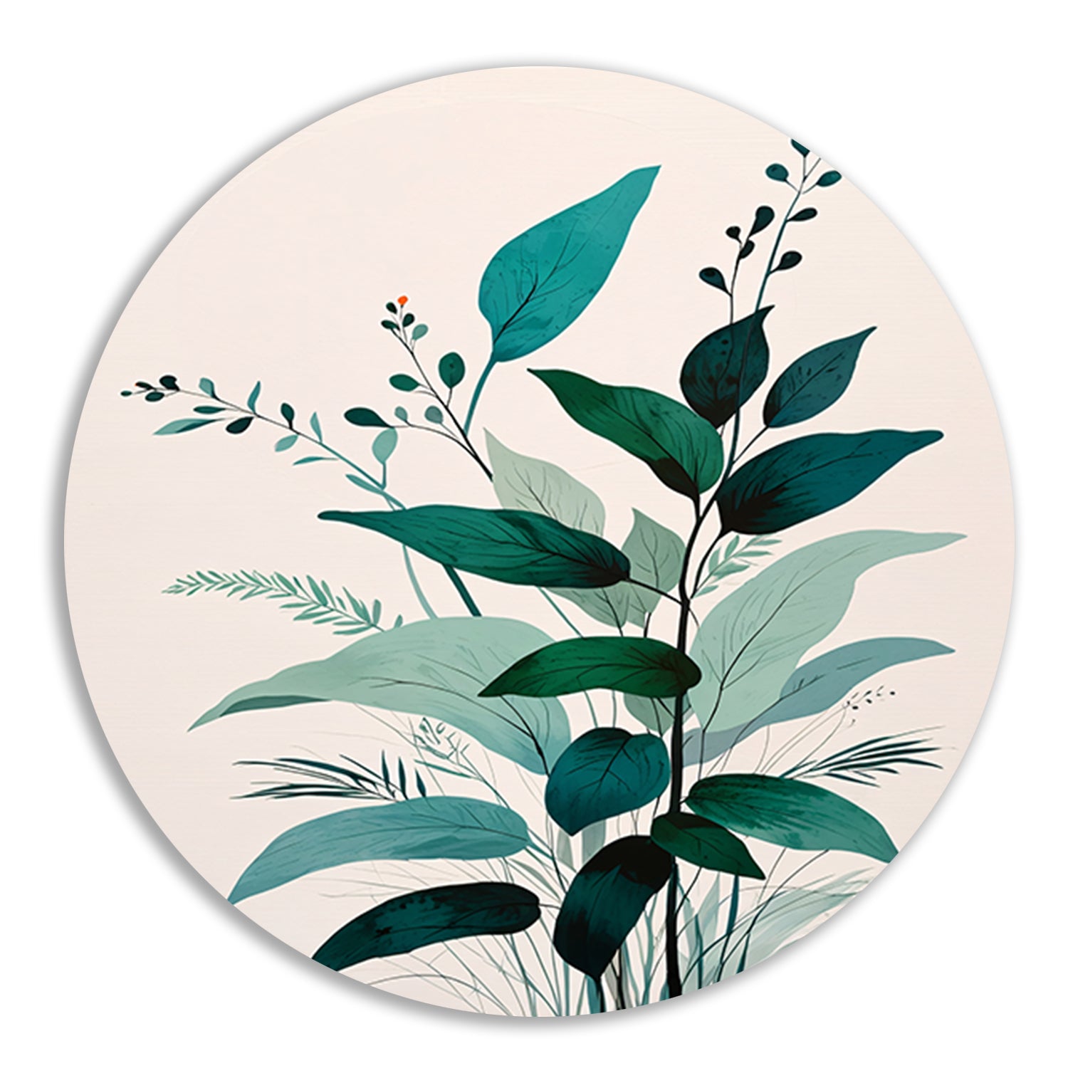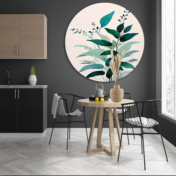 Minimalistische Japandi botanische kunst met bladeren aluminium muurcirkel