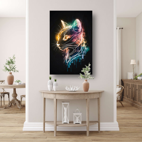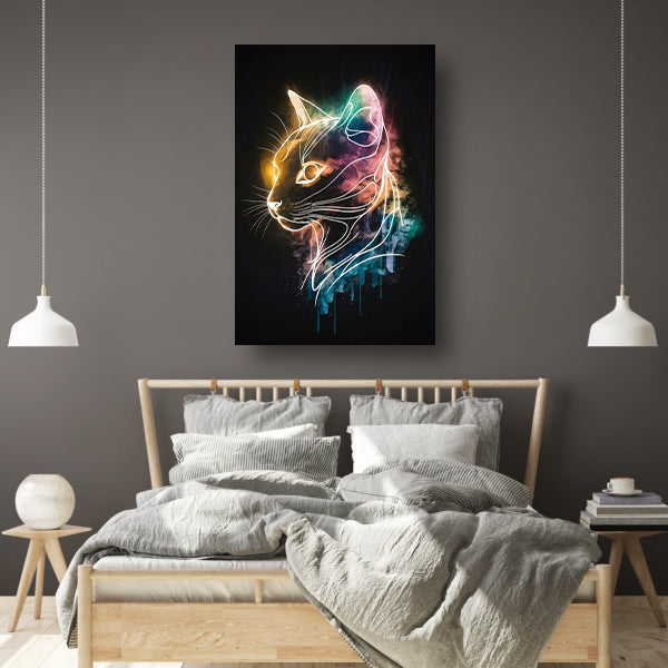 Minimalistische kleurrijke kat in Art Nouveau-stijl canvas met baklijst
