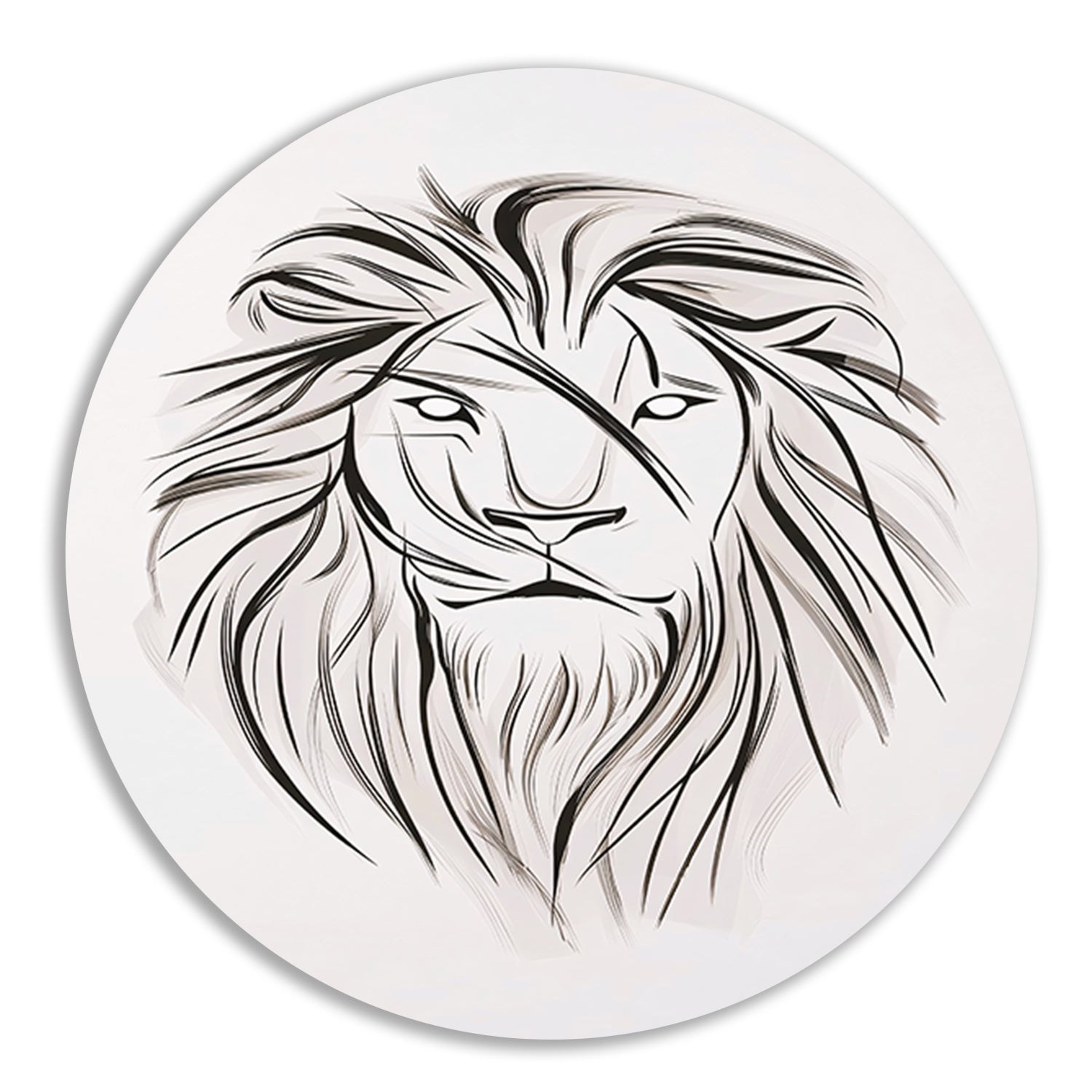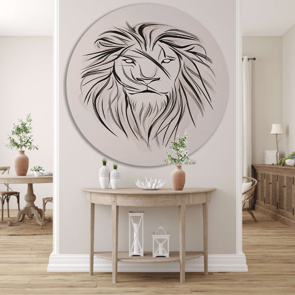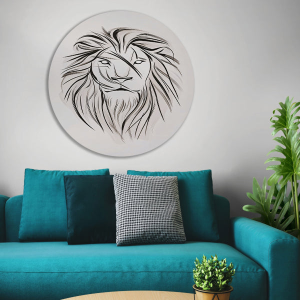 Minimalistische leeuw in zwart-wit lijnen aluminium muurcirkel