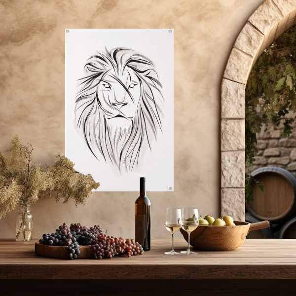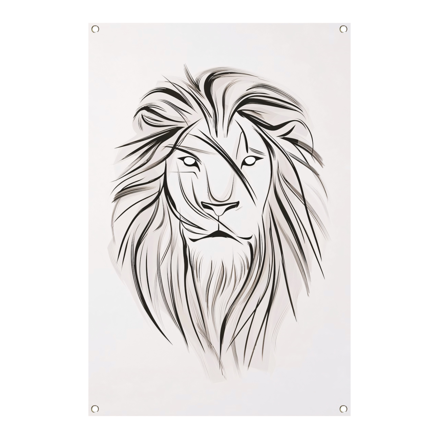 Minimalistische leeuw in zwart-wit lijnen tuinposter