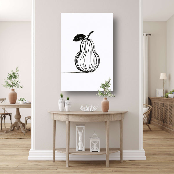 Minimalistische Lijn Kunst Peer met Blad canvas met baklijst