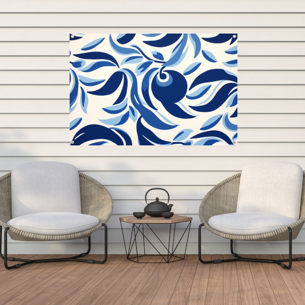 Minimalistische lijnencompositie in blauw en wit tuinposter