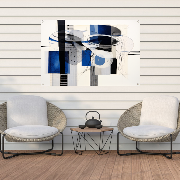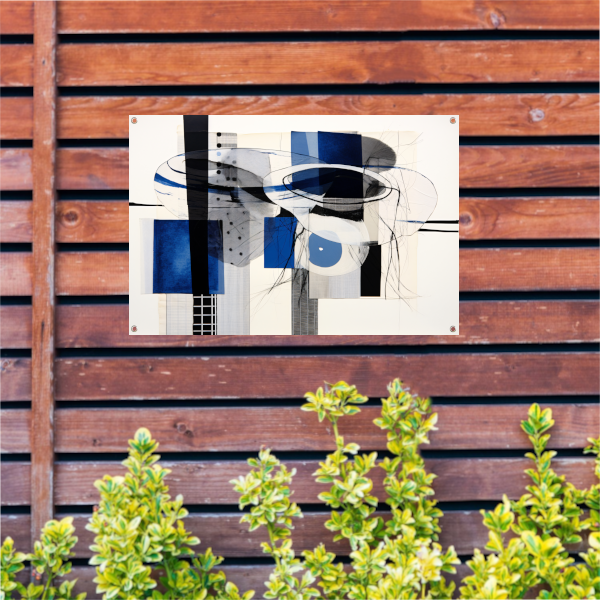 De lijnencompositie in de kleuren rood, blauw en geel zorgt voor een speels en levendig effect. Deze kleurencombinatie is niet alleen trendy, maar ook tijdloos en past bij elke tuinstijl. Of je nu een moderne of klassieke tuin hebt, deze tuinposter zal er prachtig bij passen.