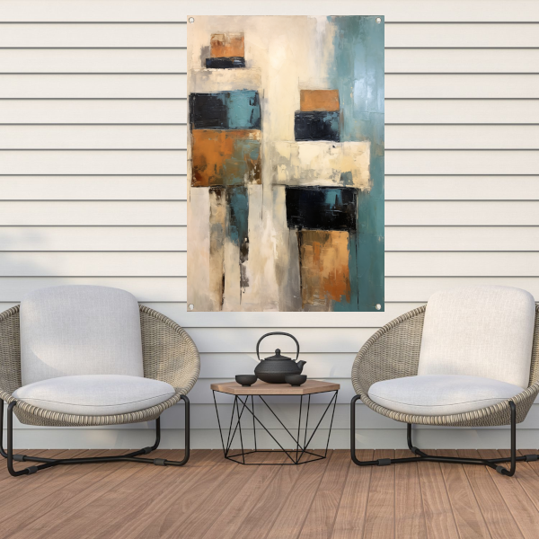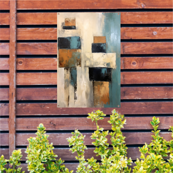 De stijl van deze tuinposter is modern en tijdloos. Het strakke ontwerp past goed bij zowel een moderne als een klassieke tuin. Door de eenvoudige vormen en kleuren zal de poster niet snel uit de mode raken en kun je er jarenlang van genieten.