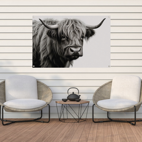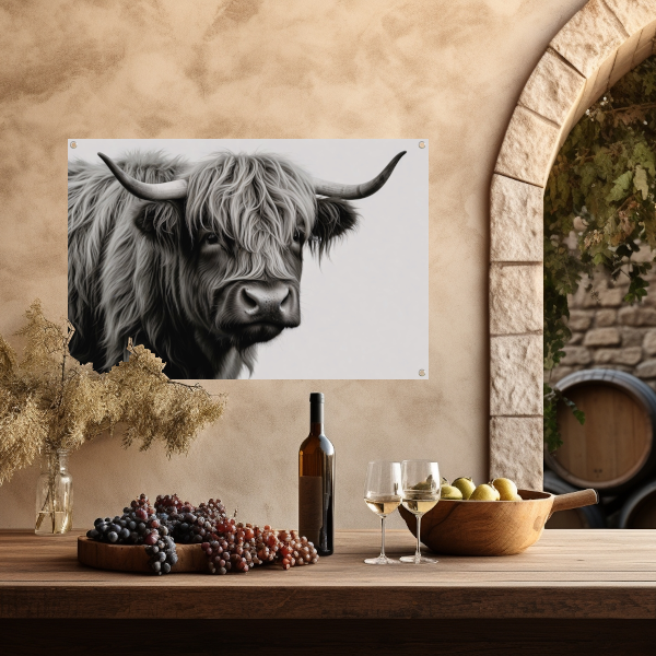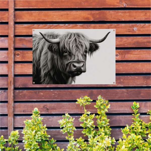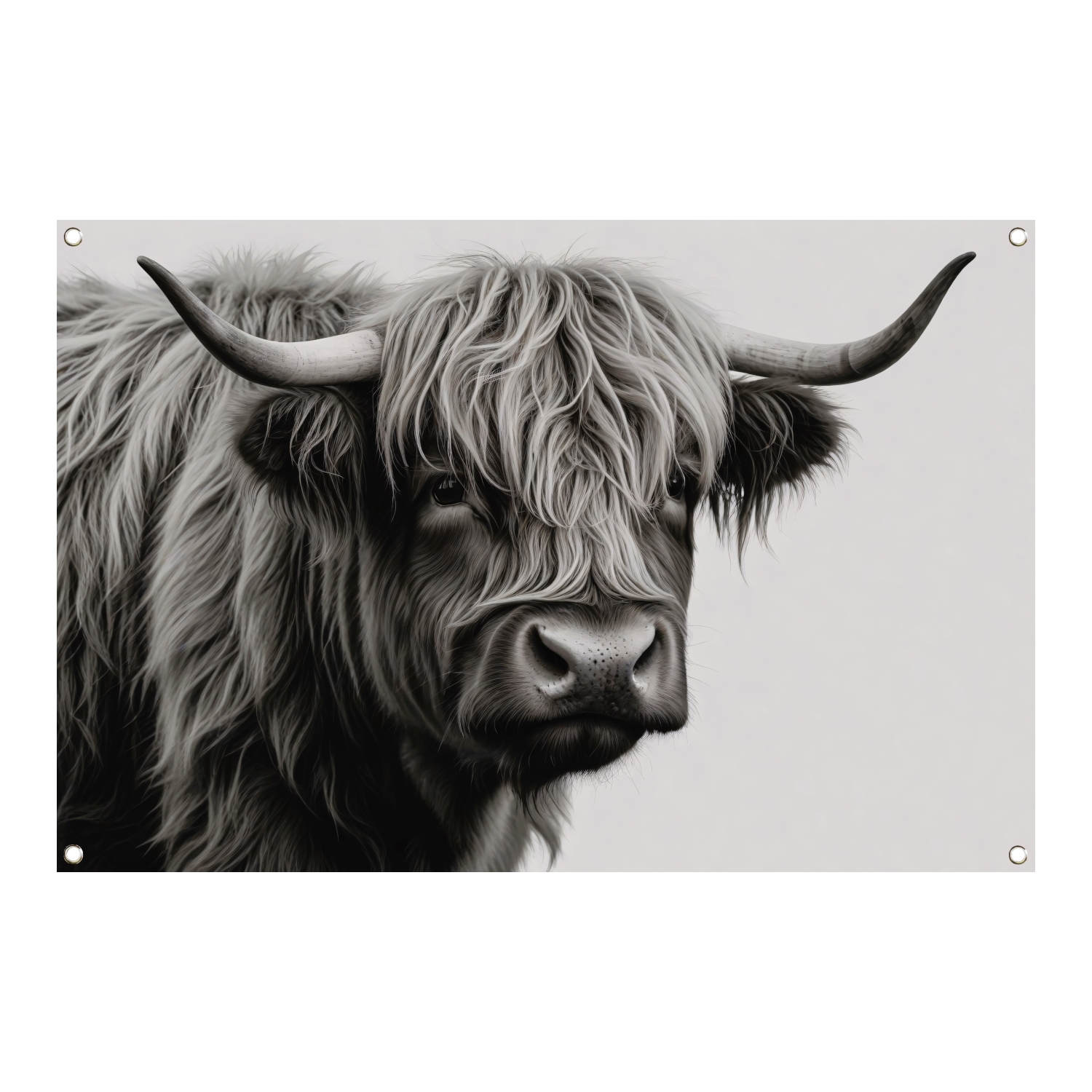 Minimalistische Schotse Hooglander in Zwart-Wit tuinposter