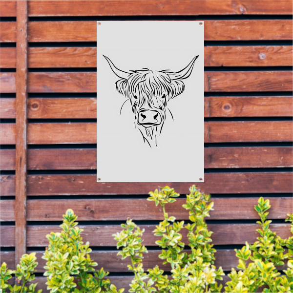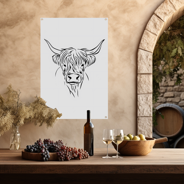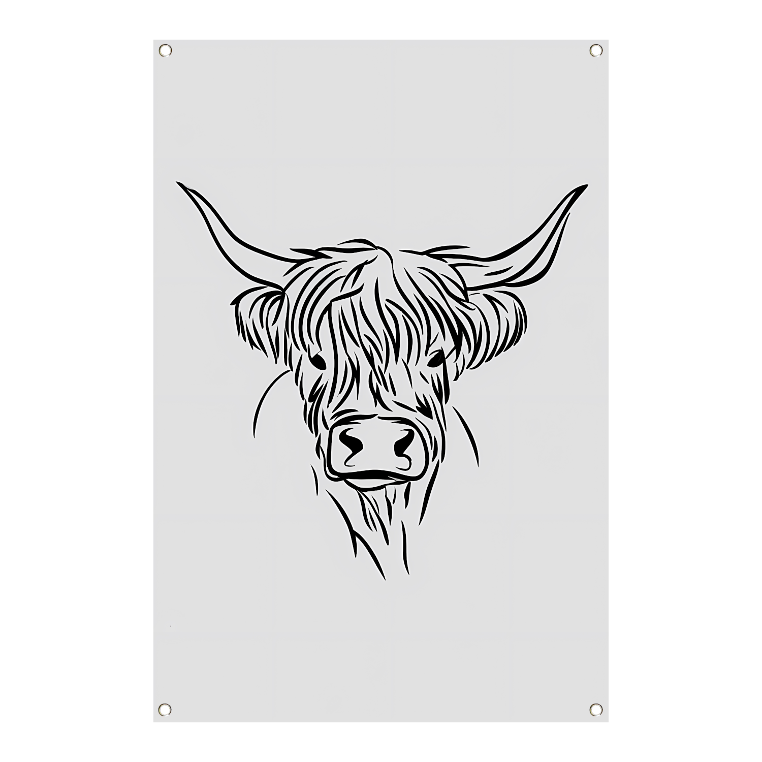 Minimalistische Schotse Hooglander in Zwart-Wit tuinposter