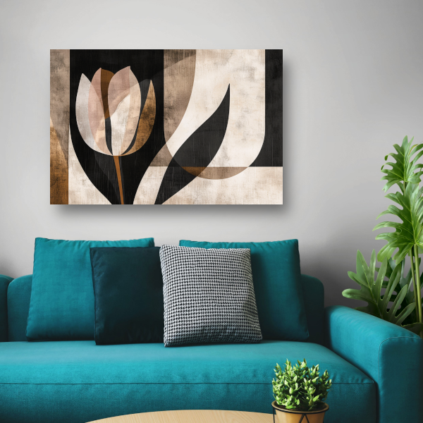 Minimalistische Sepia Tulip in Art Deco Stijl canvas