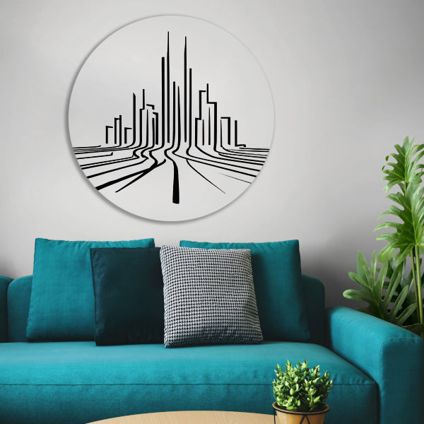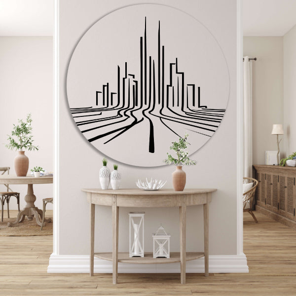 Minimalistische stadslijnen in zwart-wit aluminium muurcirkel